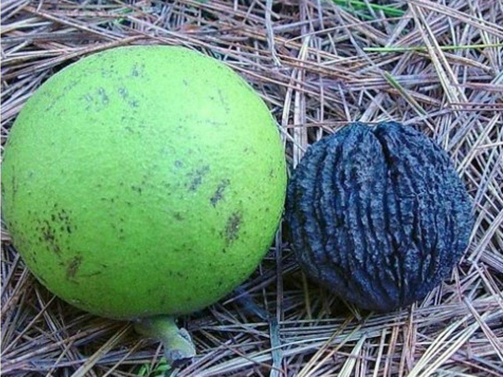 Schwarze Walnuss- stammt aus dem östlichen und mittleren Teil Nordamerikas, wo sie in nährstoffreichen Auwäldern und an feuchten Hängen wächst. Es ist ein langlebiger, laubabwerfender Baum mit einem geraden Stamm und einer ausgeprägt dunklen, tief gefurchten Rinde, die mit dem Alter einen fast schwarzgrauen Ton annimmt. Die Blätter sind groß, unpaarig gefiedert, normalerweise 30–60 cm lang, nach dem Zerreiben aromatisch und vergilben im Herbst in warmen Tönen. Von Mai bis Juni trägt er männliche Kätzchen und weibliche Blüten, die Bestäubung erfolgt durch Wind. Die Frucht ist eine runde Nuss von 4–6 cm in einer dicken grünen Hülle, die bei Reife dunkler wird und stark färbt, weshalb sie traditionell als natürliches braunes Farbmittel verwendet wurde. Die Kerne sind essbar, der Geschmack ist oft ausgeprägter als bei der gewöhnlichen Walnuss, das Knacken ist jedoch wegen der härteren Schale mühsamer. Im Erwachsenenalter erreicht er eine Höhe von 25–40 m und eine Kronenbreite von 15–25 m, im Optimum kann er noch größer sein. Er hat eine tiefe Pfahlwurzel, weshalb er das Umpflanzen in höherem Alter schlecht verträgt und als junge Pflanze besser anwächst. Die ersten Nüsse können bereits bei jüngeren Bäumen gefunden werden, eine deutlichere Ernte erscheint erst nach Jahren, wenn sich die Krone vollständig entwickelt hat. Im Garten wird er als Solitär für Schatten und Struktur eingesetzt, in der Landschaft auch als Baum mit wertvollem dunklem Holz. Die Nüsse sind groß, ungleichmäßig länglich gefurcht, kugelförmig bis eiförmig. Sie messen 3-4 cm und haben raue Rippen, was zu ihrer einzigartigen Struktur beiträgt. Die Samen sind zwar essbar, werden aber eher in dekorativen Arrangements, der Pharmazie und Bijouterie verwendet.