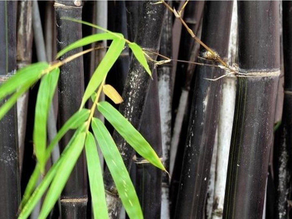 Schwarzer Bambus - eine Bambusart aus der Familie der Poaceae, bekannt als schwarzer Bambus wegen der charakteristischen Färbung älterer Halme. Er bildet einen ausdauernden, immergrünen Strauch mit Trieben, die zu Beginn des Wachstums grün erscheinen und im Laufe von 2–3 Jahren zu Schwarz nachdunkeln, was einen starken visuellen Kontrast zum mittelgrünen Laub bildet und diese Pflanze für Zierpflanzungen begehrt macht. In ausgewachsenem Zustand erreicht er normalerweise eine Höhe von 3–5 m und eine Breite von 2–4 m, unter geeigneten Bedingungen kann er die angegebenen Maße überschreiten, wobei das Wachstum in den ersten Jahren nach der Pflanzung am schnellsten ist. Er hat ausläuferbildende Rhizome, die seine Ausbreitung im Raum ermöglichen, weshalb im Garten häufig eine Wurzelsperre zur Wachstumskontrolle installiert wird. Die Blätter sind lanzettlich, glatt und dunkelgrün, normalerweise etwa 6–12 cm lang, und behalten ihre Farbe das ganze Jahr über. Er ist an verschiedene Bodentypen anpassbar, solange ausreichend Feuchtigkeit und Sonneneinstrahlung vorhanden sind, und seine dunklen Halme dienen als markantes architektonisches Element in Pflanzungen, als Solitärpflanze oder als Hecke oder Sichtschutz in Kompositionen mit anderen Bambussen oder Ziergräsern.