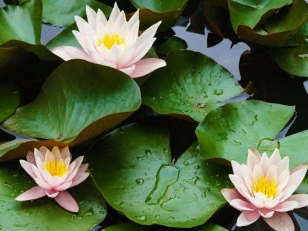 Seerosen - verschiedene Arten - Wasserpflanze, deren schwimmende runde Blätter auf langen Stielen wachsen. Die Blüten ragen aus dem Wasser heraus oder schwimmen auf der Oberfläche. Jede von ihnen hat mindestens 8 Blütenblätter in Weiß, Rosa, Gelb, aber auch in vielen anderen Farben. Je nach Art öffnen sich die Blüten tagsüber oder nachts.