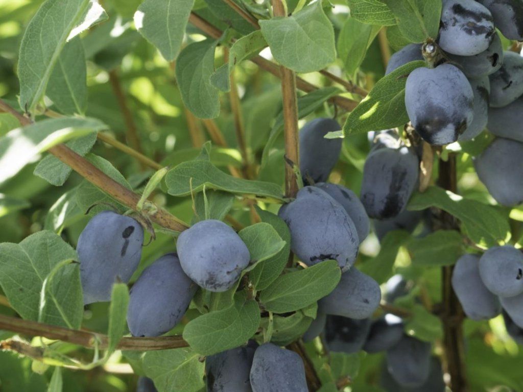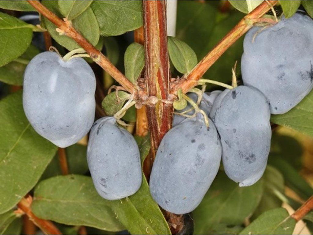 Anbau: Sie verträgt langfristig Wintertemperaturen weit unter −30 °C und die Blüten halten kurzfristigen Frühlingsfrösten von mehreren Grad unter dem Gefrierpunkt stand, was auch in kälteren Regionen eine zuverlässige Ernte ermöglicht. Am besten gedeiht sie an einem vollsonnigen Standort, wo sie den höchsten Fruchtansatz und gut ausgefärbte Früchte entwickelt. Auch im lichten Halbschatten wächst sie, die Ernte fällt jedoch etwas geringer aus. Der Standort sollte eher geschützt, aber gut durchlüftet sein, ohne dauerhaft vernässten Boden. Der Boden ist idealerweise mittelschwer bis leicht, lehmig oder lehmig-sandig, gut durchlässig, mit einem höheren Humusgehalt und einem leicht sauren bis neutralen pH-Wert im Bereich von etwa 6–7. Ungeeignet sind schwere, verdichtete und dauerhaft vernässte Böden sowie extrem saure Substrate für Moorbeetpflanzen. Die Pflanzen werden meist im Frühjahr oder Herbst gepflanzt; Containerpflanzen können vom Frühjahr bis zum Herbst mit gründlichem Gießen nach der Pflanzung gesetzt werden. Die empfohlenen Abstände im Garten betragen etwa 1–1,5 m zwischen den Sträuchern und 2–3 m zwischen den Reihen. In den ersten Jahren wird nur ein leichter Erziehungs- und Pflegeschnitt durchgeführt, bei dem schwache, sich kreuzende oder beschädigte Triebe entfernt werden. Etwa nach 6–7 Jahren beginnt die schrittweise Verjüngung, bei der jedes Jahr ein Teil der ältesten Äste an der Basis herausgeschnitten wird und jüngere, ertragreichere Triebe stehen bleiben. Die Bewässerung ist vor allem im ersten Jahr nach der Pflanzung und in längeren Trockenperioden wichtig, ansonsten verträgt die Honigbeere kurze Trockenperioden recht gut. Die Düngung richtet sich nach den Grundsätzen für Obststräucher – im Frühjahr ist es ratsam, Kompost oder langsam löslichen Dünger zuzugeben, im Sommer werden höhere Stickstoffgaben reduziert, damit das Holz vor dem Winter ausreifen kann. Die Fläche unter den Sträuchern wird mit gemähtem Gras, Laub oder Rindenmulch gemulcht, was die Verdunstung und das Unkrautwachstum begrenzt. Die Kamtschatka-Honigbeere ist im Allgemeinen gesund, Blattläuse oder Mehltau treten nur ausnahmsweise auf; bei gutem Pflanzenzustand reicht in der Regel eine schonende, präventiv ausgerichtete Pflege. In der Komposition kommt sie in essbaren Mischpflanzungen, niedrigen, freiwachsenden Hecken sowie als Solitär in der Nähe von Sitzplätzen zur Geltung, wo die frühen Früchte bequem geerntet werden können. Da die Vegetationsperiode in Sibirien kurz ist, trocknen die Blätter bereits im Juli ein.