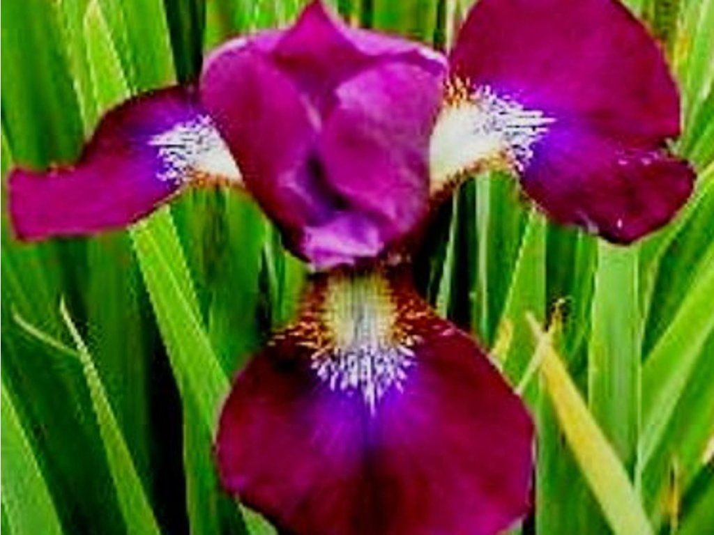 Sibirische Schwertlilie 'Roter Milan' - eine höhere Sorte einer weniger bekannten Schwertlilie, die eine Höhe von 70 - 80 cm erreicht. An den aufrechten, kräftigen Stängeln wachsen zahlreiche auffällige und angenehm duftende Blüten, die purpurrot mit weiß-gelben Zeichnungen sind. Blüht ab Mai. Sie bildet Büschel von schwertförmigen, flachen Blättern, die graugrün mit einem Hauch von Blaugrün sind. Eignet sich hervorragend für gemischte Staudenbeete, aber auch für Gruppenpflanzungen mit anderen Kultivaren. Die Blüten eignen sich gut als Schnittblumen.