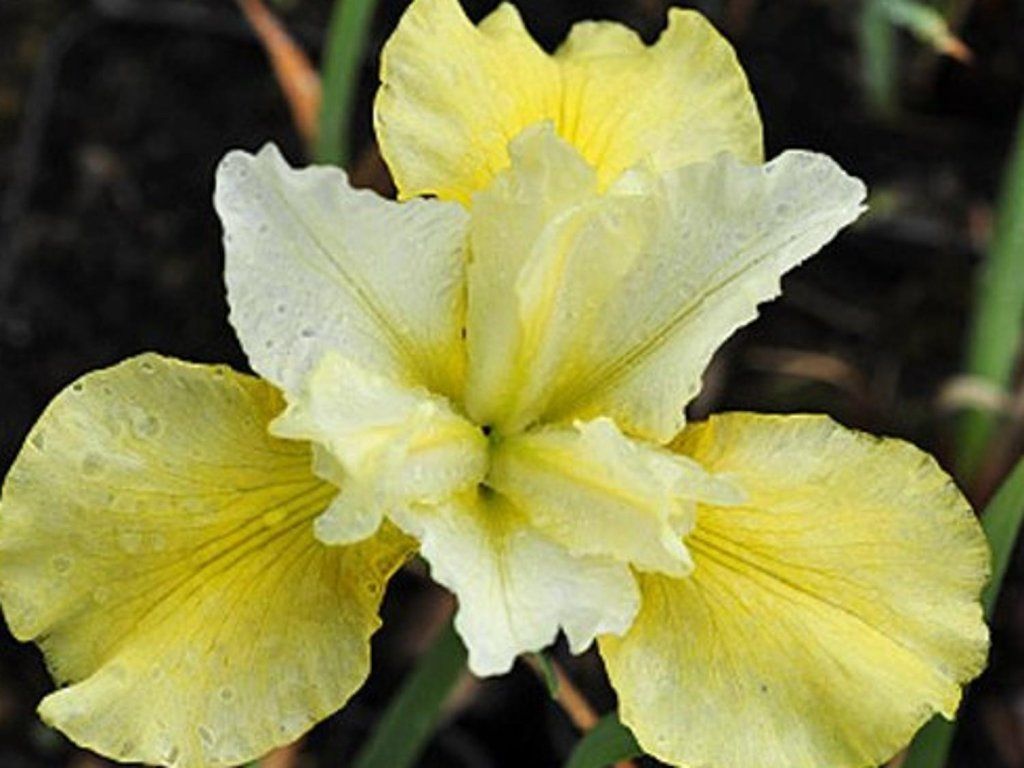 Schwertlilie 'Summer Revels' - hellgelbe Blüten zieren diese bis zu 80cm hohe Staude. Blühen von Mai bis Juni über Büscheln frischgrüner Blätter. Geeignet für den Schnitt.