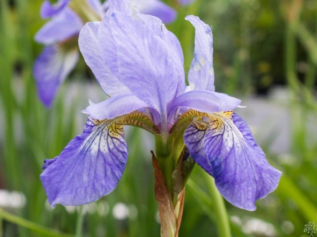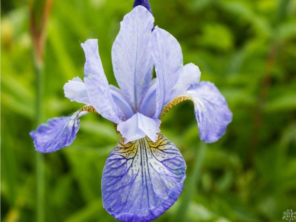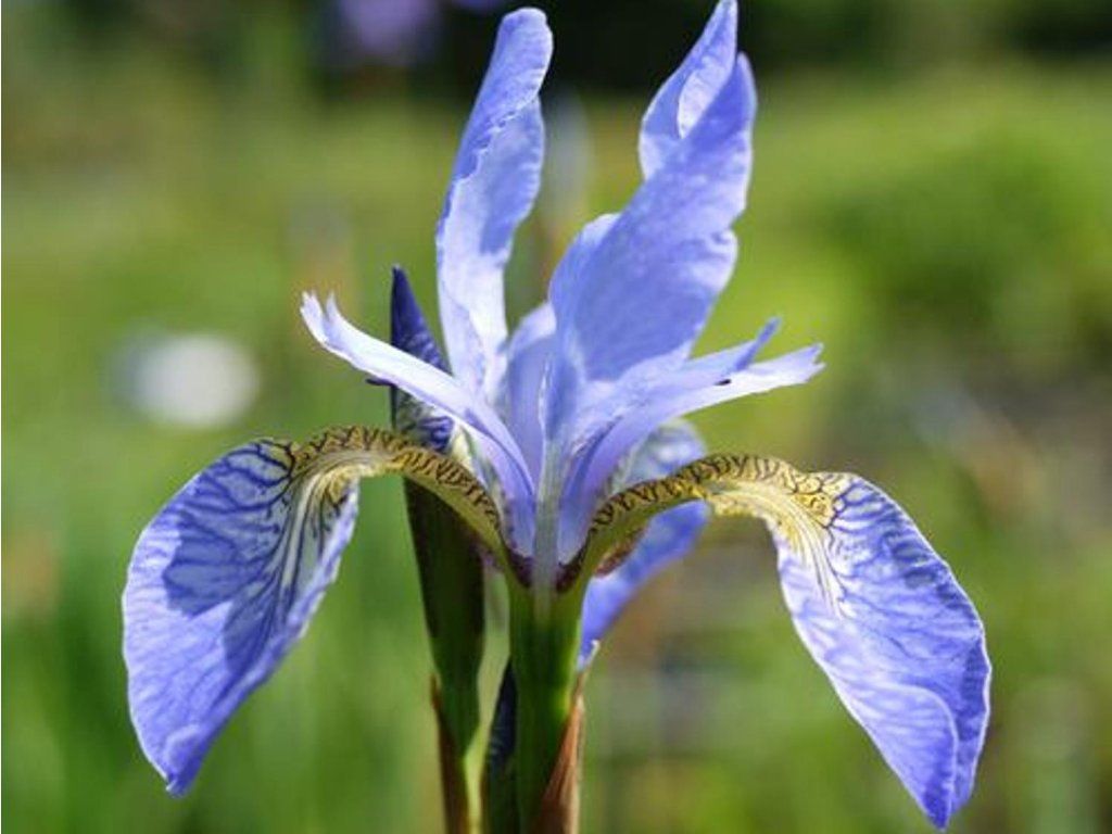 Sibirische Schwertlilie 'Tamberg' - gehört zu den langlebigen Stauden feuchter Wiesen und Flussauen der gemäßigten Zone Europas und Westasiens. Die Sorte 'Tamberg' wird in Gärten als zuverlässige blau blühende Sorte für naturnahe und formellere Pflanzungen eingesetzt. Sie bildet einen Horst aus schmalen, schwertförmigen Blättern von hellgrüner Farbe mit blau-grauem Schimmer, die auch nach der Blüte aufrecht und dekorativ bleiben. Zur Blütezeit erreichen die Stiele normalerweise eine Höhe von 60–80 cm, die Breite eines ausgewachsenen Horstes beträgt etwa 45–60 cm. Von Mai bis Juni öffnen sich bartlose Blüten von 6–8 cm Breite in einem leuchtend blauen Farbton, an der Basis der äußeren Blütenblätter erscheint oft eine hellere Zeichnung. Der Duft ist meist unauffällig. Die Blüten eignen sich auch zum Schnitt, im Garten locken sie Bienen und Hummeln an. Die Pflanze kann nach dem Verzehr reizend sein. In der Komposition bewährt sie sich neben weißen Astilben, rosa Storchschnäbeln, Taglilien und Ziergräsern, wo die Blätter der Schwertlilie natürlich die Rolle von Grasbüscheln übernehmen. Sie wirkt auch gut in Wegrändern und an Einfassungen, da sie nach der Blüte keine Lücke hinterlässt.