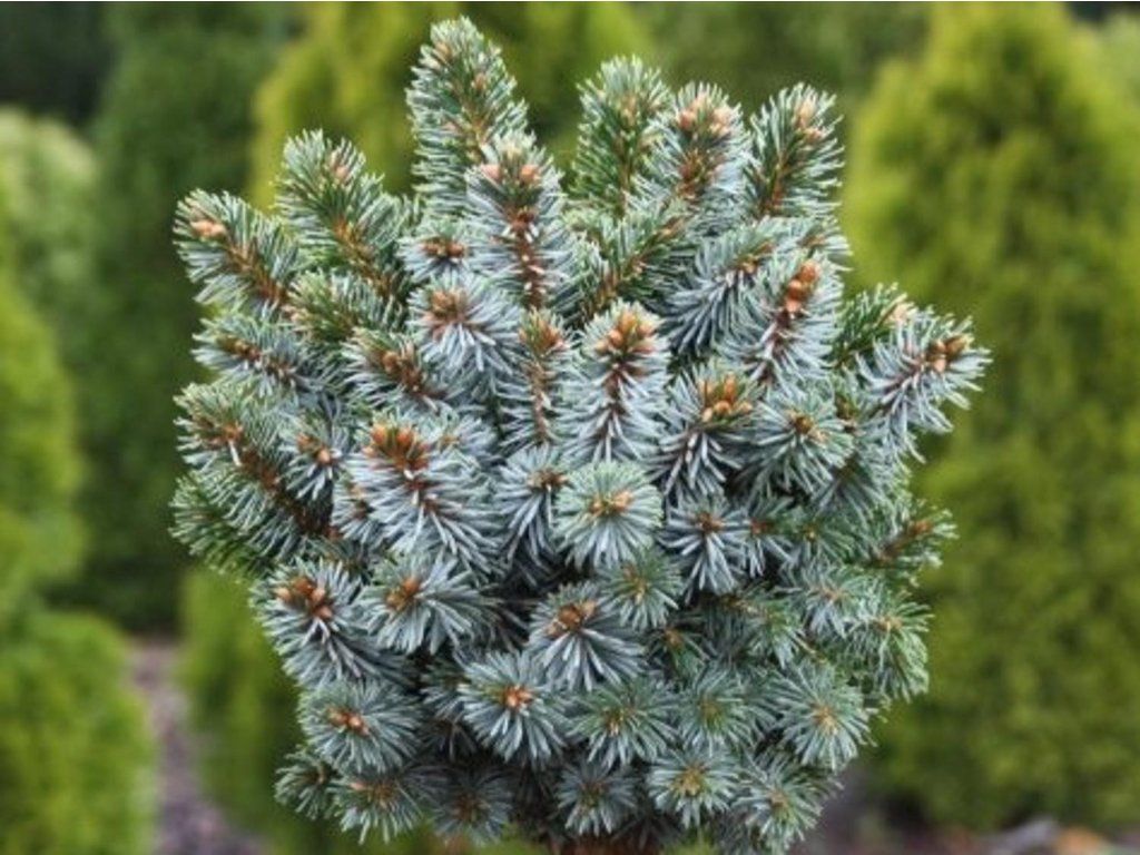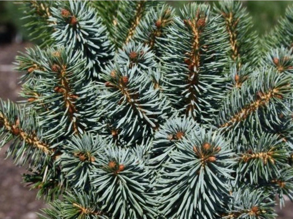 Sitka-Fichte 'Gelert' - langsam wachsender, vielgestaltiger, flachkugelförmiger Kultivar. Er erreicht eine Höhe von ca. 60-90 cm und eine Breite von 1,1 m, diese Ausmaße erreicht er etwa im zehnten Jahr. Wie andere Kultivare dieser Art hat er grüne Nadeln auf der Oberseite, von unten schimmert die silberne Farbe durch. Beide Farbvarianten sind sichtbar, so dass Sie ein zweifarbiges Schauspiel erleben werden. Er ist gut frostbeständig. Er kommt im Staudenbeet in Gesellschaft anderer Nadelbäume und Ziersträucher schön zur Geltung.