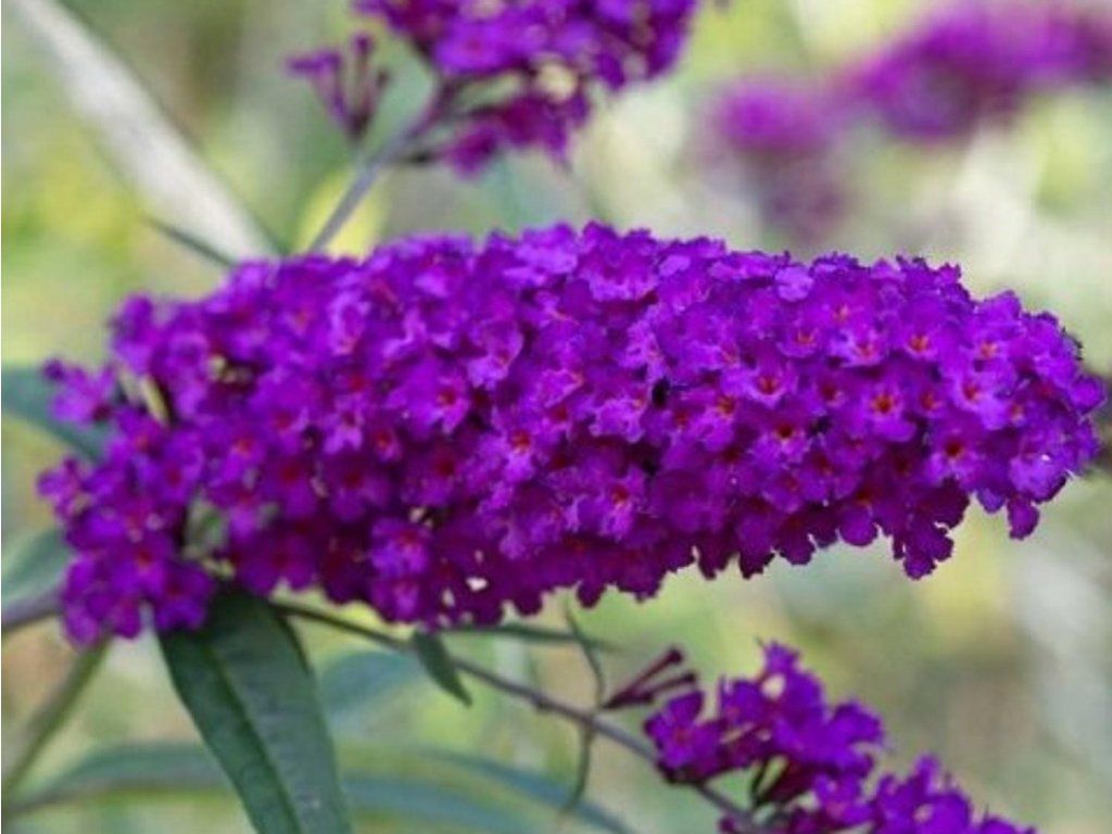 Schonmal David 'African Queen' - gehört zu den traditionellen Gartenkultivaren des Buddleja mit einer langen Zuchtgeschichte in Europa, in der Literatur wird eine Auswahl des niederländischen Baumschulers W. erwähnt. Schoemaker um 1959. Der Strauch ist laubabwerfend, wächst mittel schnell und erreicht ausgewachsen in der Regel eine Höhe von 1,5–2,5 m und eine Breite von 1–1,5 m, mit bogenförmig gewölbten Trieben. Die Blätter sind gegenständig, lanzettlich, oberseits mittelgrün und auf der Unterseite fein filzig, was die Verdunstung bei Hitze reduziert. Die Blüten sind klein, röhrenförmig und in länglichen Rispen von meist 25–30 cm Länge angeordnet, in wärmeren Lagen auch länger. Die Farbe geht in ein tiefes violettes Purpur über mit einem auffälligen gelben Auge im Schlund, was dem Blütenstand auch bei diffusem Licht Glanz verleiht. Unter unseren Bedingungen blüht sie zuverlässig von Juli bis September – das fortlaufende Entfernen verblühter Rispen verlängert die Knospenbildung bis in die ersten kühleren Tage. Der süße Blütenduft lockt Schmetterlinge, Bienen und Hummeln an. Sie findet Verwendung als Solitärpflanze sowie in gemischten Staudenbeeten im hinteren Bereich. Visuell ergänzt sie sich gut mit Ziergräsern wie z.B. Draht-Schmiele, Kahl-Haseohr oder Federgras und mit Sommerstauden im warmen Farbspektrum, z.B. Sonnenhut, Katzenminze, Mannstreu, Zierlein oder Eisenkraut. Für den Schnitt wird sie eher selten verwendet, am besten in der frühen Blütephase.
