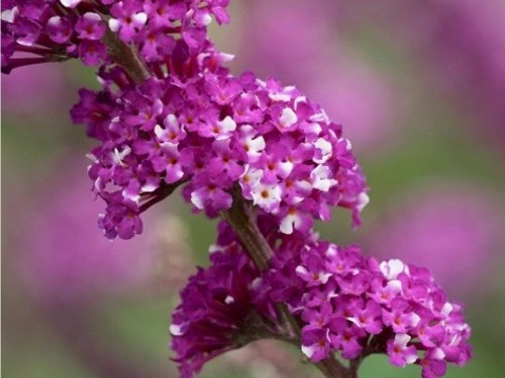 Buddleja Davidii 'Berries and Cream' - stammt aus der englischen Züchtung von Peter Moore. Die Art Buddleja davidii stammt ursprünglich aus den Berg-Buschgebieten und Schotterbänken Zentralchinas, woher sie ihre Widerstandsfähigkeit gegen Sommerhitze und Feuchtigkeitsschwankungen mitbringt. ‘Berries and Cream’ zeichnet sich durch zweifarbige Blütenstände aus. In einer Rispe erscheinen kleine, röhrenförmige Blüten in Cremeweiß und Purpurviolett, wobei ein Teil der Blüten einfarbig und ein Teil „überfärbt“ ist. Die Rispen sind etwa 15–20 cm lang, leicht verjüngt und werden an den Enden der diesjährigen Triebe getragen. Die Blütezeit tritt unter unseren Bedingungen zuverlässig von Juli bis September auf, in warmen Lagen und bei kontinuierlicher Entfernung verblühter Rispen verlängert sie sich bis Oktober. Der Duft ist zart süß und die Blüten stellen eine reiche Nektarquelle für Schmetterlinge, Bienen und Hummeln dar. Der Habitus ist aufrecht bis bogenförmig gewölbt. Der laubabwerfende Strauch erreicht normalerweise eine Höhe von 1,8–2,2 m und eine Breite von 1–1,5 m. Die Blätter sind gegenständig, lanzettlich, auf der Oberseite mittelgrün bis leicht graugrün, auf der Unterseite fein filzig, was die Verdunstung bei Hitze reduziert. In der Gartengestaltung bringt ‘Berries and Cream’ einen lebendigen Sommerakzent und wechselnde Farbtöne. Passt gut zu Ziergräsern, wie z. B. Kalamagrostis, Deschampsia oder Festuca, und zu Sommerstauden in blau-silberner oder warm-purpurner Farbpalette, wie Katzenminze, Ziersalbei, Salbei, Sonnenhut oder argentinischer Eisenkraut. In Kübeln kommt sie dort zum Einsatz, wo saisonale Farbe und Anziehungskraft für Bestäuber ohne aufwendige Pflege gewünscht sind.