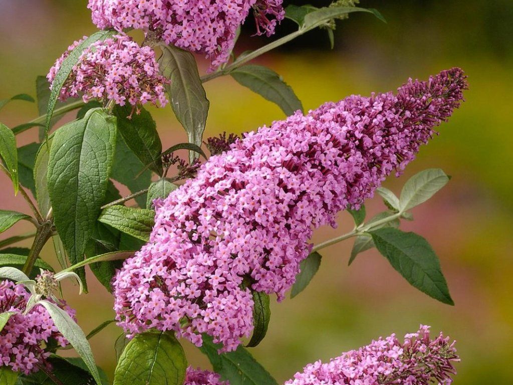 Buddleja davidii 'Pink Delight' - ein laubabwerfender Strauch, der eine Höhe von 2-3 m erreicht. Die graugrünen Blätter sind lanzettlich und fein behaart. Sie werden wunderschön ergänzt durch tiefrosa Blüten, die röhrenförmig sind und in bis zu 40 cm langen Rispen angeordnet sind. Sie blühen von Juli bis September. Dieser Strauch ist bei Schmetterlingen sehr beliebt. Benötigt gut durchlässigen, nährstoffreichen Boden, verträgt keine Staunässe.