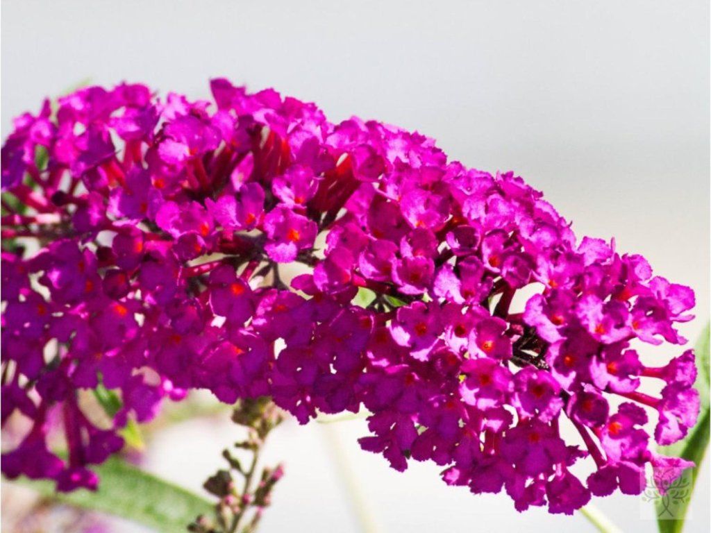 Schmetterlingsflieder 'Royal Red' <\/strong>- gehört zu den traditionellen Sommersträuchern, die für ihre langen, tief purpurroten Blütenrispen und ihren reichen Nektar geschätzt werden, der Schmetterlinge und Bienen anlockt. Die Sorte entstand in den 1940er Jahren in den USA und verbreitete sich bald in europäischen Gärten wegen ihrer Zuverlässigkeit und Anspruchslosigkeit. Die ursprüngliche Art des Schmetterlingsflieders wächst in Berg- und Vorgebirgsregionen Zentralchinas, wo sie sonnige, kiesige Hänge besiedelt. Daher rührt ihre Anforderung an eine warme, gut durchlässige Umgebung. 'Royal Red' bildet einen luftigen, bogenförmig ausladenden Strauch von 2-3 m Höhe und etwa 2-2,5 m Breite. Die Blätter sind schmal, mattgrün bis graugrün, auf der Unterseite fein filzig. Von Juli bis September trägt sie an den Triebspitzen lange Blütenrispen, üblicherweise 30-50 cm, bestehend aus kleinen, röhrenförmigen Blüten mit einem deutlichen orangefarbenen Auge. Die Blüten duften leicht und bilden einen auffälligen Farbakzent im Garten, der Ziergräser, Perowskien, Fetthennen, Storchschnäbel oder Sonnenhüte gut ergänzt. In Stadt- und Landgärten wird er als Solitär, in gemischten Beeten oder als leichter, unregelmäßiger Blühschirm eingesetzt.