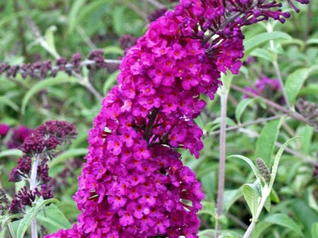 Schmetterlingsflieder BUTTERFLY TOWER ´Magenta´ - aufrecht wachsende Sorte, die eine Höhe von 2 m und eine Breite von 1 m erreicht. Die Blätter sind länger, lanzettlich, von satter grüner Farbe. Die blühenden Rispen sind 20 - 25 cm lang, voller kleiner, röhrenförmiger, tiefrosa bis violetter Blüten. Er eignet sich für die Kultivierung in Gefäßen, aber auch für Hecken. Er zieht Schmetterlinge und Bienen an. Ideale Solitärpflanze.