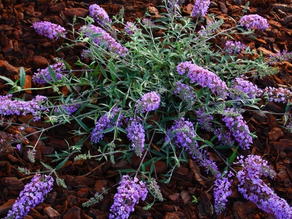 Buddleja Davidii Free Petite 'Lavender Flow' - ein ausladender Strauch mit bogenförmig überhängenden Zweigen. Die Sorte 'FP Lavender Flow' ist Teil der kompakten Free Petite-Reihe und wurde in den USA gezüchtet, wo sie vom Züchter Peter Podaras an der Cornell University selektiert wurde. In europäischen Angeboten erscheint sie auch unter der offiziellen Bezeichnung 'Podaras 12' und wird für ihren niedrigen, breit ausladenden Habitus und die begrenzte Samenbildung geschätzt. Der Strauch ist laubabwerfend, mit bogenförmig ausgebreiteten Zweigen, in der Reife normalerweise 0,6–0,8 m hoch und 0,9–1,2 m breit. Die Blätter sind gegenständig, lanzettlich, fein behaart, graugrün. Von Juli bis September, im warmen Herbst oft bis in den Oktober hinein, trägt sie an den Enden der diesjährigen Triebe dichte Rispen von etwa 15–25 cm Länge. Die kleinen Blüten haben einen hellvioletten bis lavendelfarbenen Ton mit einem orangen Auge, duften süß und locken Schmetterlinge und Bienen an. Die leicht filzige Unterseite der Blätter verleiht dem Strauch einen gräulichen Schimmer, der die Farbe des Blütenstandes hervorhebt. In der Komposition kommt sie am Rand von Staudenbeeten, in Kiespflanzungen und in größeren Gefäßen zur Geltung, sie harmoniert gut mit Lavendel, Salbei, Perowskia und Ziergräsern.