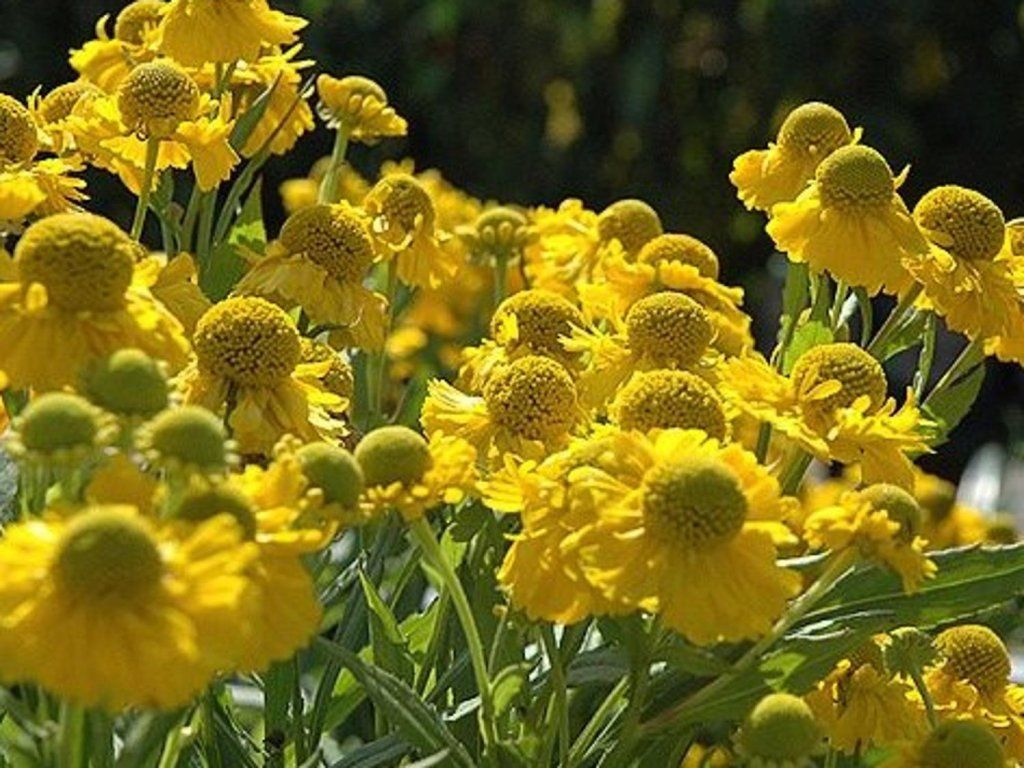 Sonnenbraut x hybrid ‚Double Trouble‘ - eine aufrechte, horstbildende Staude, die ursprünglich aus den Bergregionen der USA stammt. Die Blätter sind gräulich-grün. Sie blüht im Frühsommer mit leuchtend gelben Blüten. Benötigt Halbschatten/volle Sonne und ist anspruchslos an den Bodenstandort, gedeiht aber am besten in nährstoffreichem, mäßig durchlässigem Boden. Eignet sich für die Gruppenpflanzung sowie als Solitär. Sie ist auch für den Schnitt geeignet.