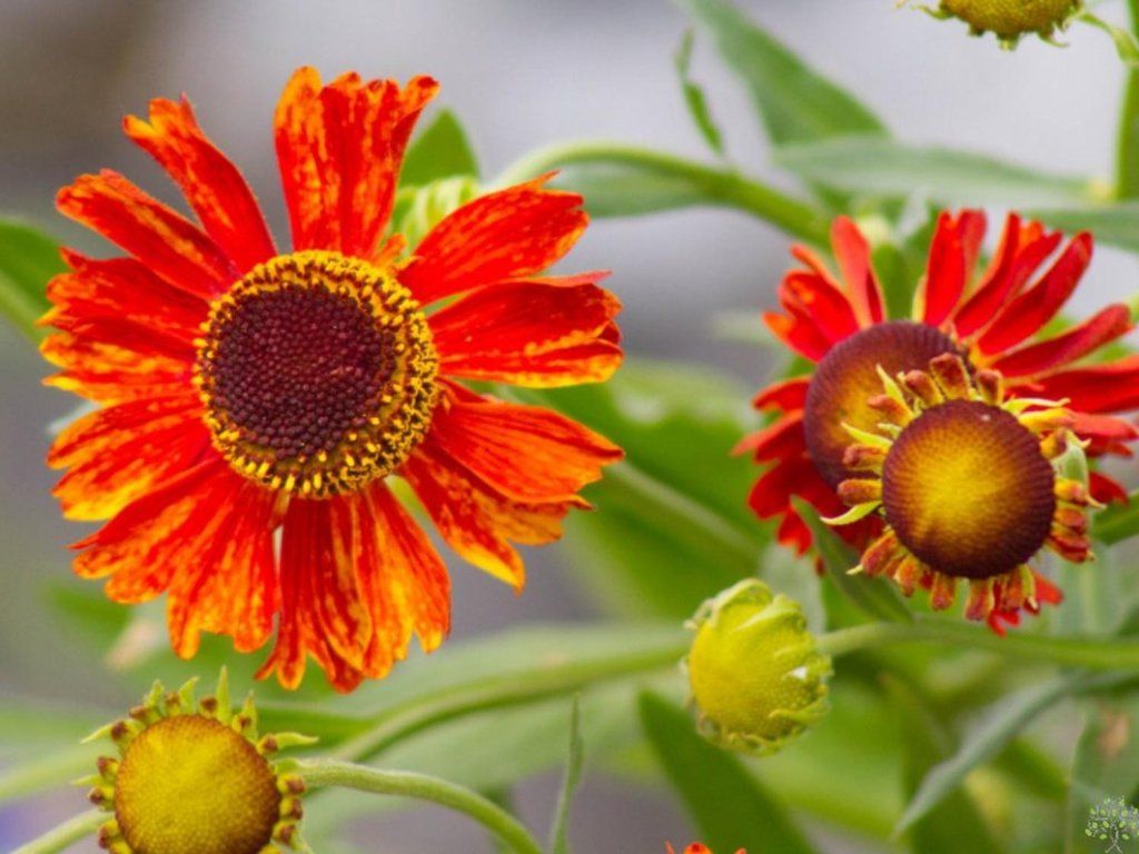 Sonnenbraut x hybr. 'Moerheim Beauty' - die Sorte 'Moerheim Beauty' wurde um 1930 von der Gartenarchitektin Mien Ruys in den Niederlanden selektiert und ist nach der Baumschule Moerheim Nursery in Dedemsvaart benannt, wo sie entstanden ist. Sie bildet eine aufrechte, horstige Wuchsform mit stabilen, verzweigten Stängeln und lanzettlichen, mittelgrünen Blättern. Zur Blütezeit erreicht sie normalerweise eine Höhe von 0,9–1,2 m, die Breite des Horstes beträgt 0,45–0,6 m und die Endgröße wird innerhalb von 2–5 Jahren erreicht. Von Juli bis September erscheinen die Blütenköpfe von etwa 4–6 cm über dem Laub. Die zungenförmigen Blütenblätter haben anfangs einen tiefrot-orangen Ton, der sich mit zunehmender Reife zu kupferfarbenen und rostigen Schattierungen verschiebt, die Blütenmitte ist auffallend schokoladenbraun mit goldenem Pollen. Der Duft ist nicht ausgeprägt. Die Blüten liefern Pollen und Nektar und gehören zu den wertvollen Nahrungsquellen für Bienen und Schmetterlinge in der zweiten Sommerhälfte, gleichzeitig eignen sie sich als Schnittblumen. In Staudenbeeten harmoniert sie gut mit Ziergräsern, Sonnenhüten, Astern und Fetthennen, wo die warme Farbgebung wie die untergehende Sonne über dem Beet wirkt.