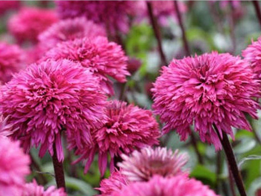 Echinacea 'Blackberry Truffle' - eine schöne und auffällige Staude, die jeden Garten bereichert. In ausgewachsenem Zustand erreicht die Pflanze eine Höhe von etwa 70 - 80 cm. Die Blüten sind voll und blühen auf hohen und kräftigen Stielen. Sie haben eine tiefrosa Farbe, die Blütenblätter sind am Rand gezahnt und bieten ein sehr interessantes Aussehen. Die Blätter sind tiefgrün. Sie kommt in einem Beet oder in einem Topf mit anderen Arten von Echinacea oder mit anderen Arten von niedrigen Stauden hervorragend zur Geltung. Sie ist pflegeleicht und eignet sich zum Schnitt oder als Teil von Blumenarrangements. Die Blütezeit ist von Juli bis September.