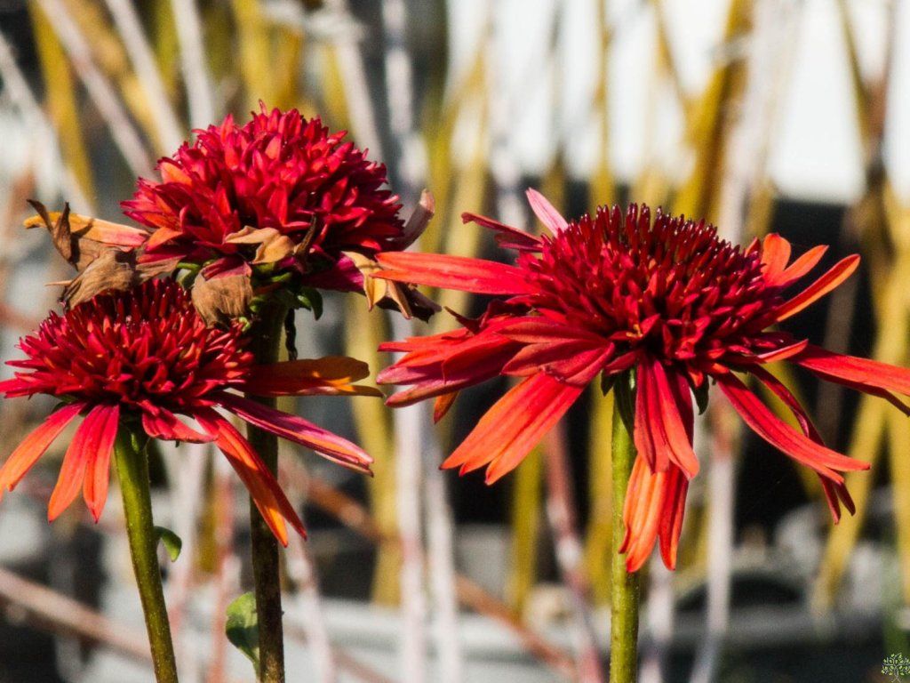 Sonnenhut 'Carrot Cake' – basierend auf Präriearten aus Nordamerika, werden sie im Garten für ihre lange Sommerblüte, ihre stabilen Stiele und ihre Fähigkeit, auch in trockeneren Böden zu wachsen, geschätzt. ‘Carrot Cake’ ist eine gefüllte Sorte aus dem AB Cultivars Programm. Sie wurde 2021 auf den Markt gebracht und ist durch das Patent PP33649 geschützt. In europäischen Katalogen erscheint sie auch unter der Bezeichnung ‘Carrot489’ innerhalb der Cone-fections Serie. Die Pflanze bildet einen dichten, kompakten Horst, der normalerweise eine Höhe von etwa 35–40 cm und eine Breite von etwa 35–45 cm erreicht. Von Juni bis September erscheinen auf aufrechten Stielen auffällige, gefüllte Blütenkörbchen in tiefem karottenorangem Farbton, oft mit einer dunkleren, flachen Mitte. Der Blütendurchmesser liegt normalerweise bei etwa 7–9 cm. Die gefüllte Form wirkt auch aus der Nähe dekorativ und funktioniert gut in Behältern, wo die Verzweigung der Stiele zur Geltung kommt. Für Pflanzungen passt sie gut zu blauvioletten Stauden, zum Beispiel zu Katzenminze, Salbei und Perowskia, sowie zu zarten Gräsern. Bei gefüllt blühenden Rudbeckien ist der Nutzen für Bestäuber geringer als bei einfachen Formen, dennoch behaupten sie sich im Garten als stabiler Farbakzent. Die Blüten sind auch zum Schnitt geeignet, bei der Ernte im halben Blühstadium halten sie sich mehrere Tage in der Vase. Die Blütenstiele sind fest und benötigen meist keine Stütze. Die Blütenstiele wachsen aus den Blattrosetten und tragen einzelne Blüten, die sich im Sommer und Herbst öffnen und durch ihre Farbe und Form Aufmerksamkeit erregen.