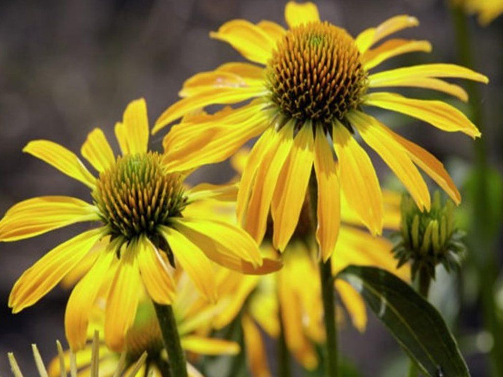 Gold Skipper-Sonnenhut - eine pflegeleichte Staude, die aus dem mittleren Westen Amerikas und Europa stammt. Wird oft auch als Heilkraut verwendet. Sie wächst bis zu einer Höhe von 100 cm (abhängig von der gewählten Sorte). Die gesamte Gruppe strahlt in so vielen Farben, dass es fast unmöglich ist, sie hier alle aufzuzählen, ohne eine zu vergessen. Einige Sorten beginnen bereits Anfang Mai zu blühen, am häufigsten jedoch beginnen sie im Juli und blühen bis zum Spätsommer, also bis September. Es ist ratsam, die Blüten nach dem Verblühen abzuschneiden oder abzubrechen, aber den Stiel für weitere Knospen aufzubewahren. Die Pflanze bevorzugt volle Sonne und gut durchlässigen, leicht feuchten Boden. Eine Kombination aus mehreren Sonnenhut-Sorten sieht wunderschön aus, zum Beispiel im Vordergrund niedriger grüner Sträucher usw.