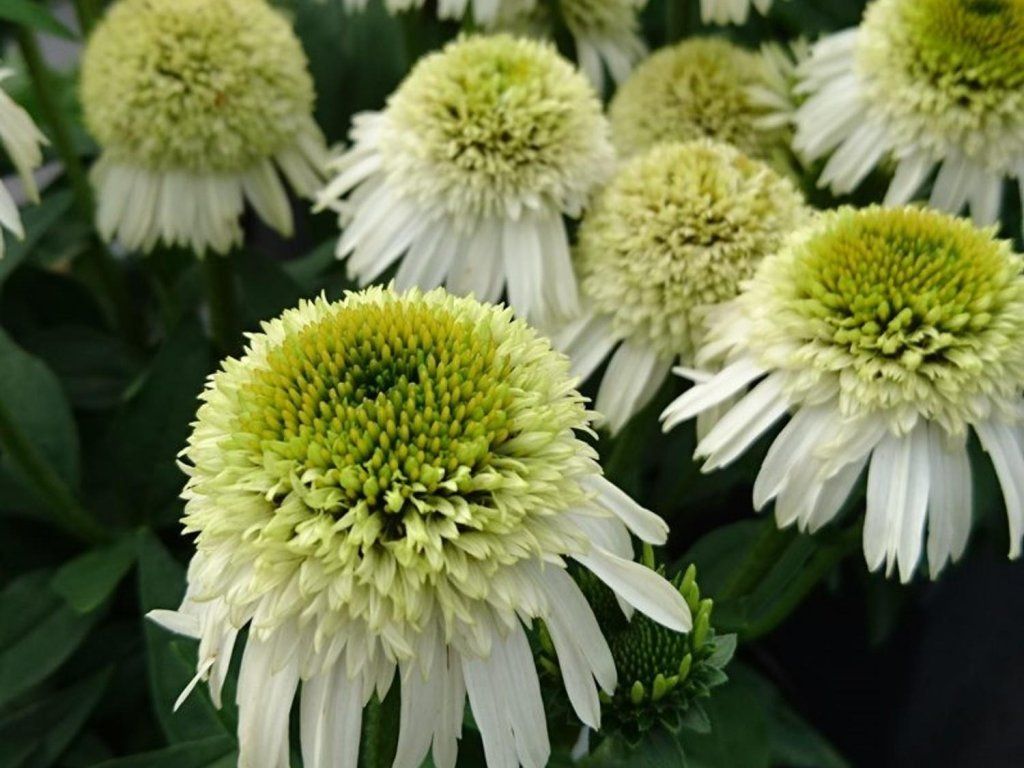 Echinacea DELICIOUS NOUGAT 'Noecthree' - eine Präriestaude aus Nordamerika, geschätzt für ihre lange Blütezeit und ihre stabilen Stiele. DELICIOUS NOUGAT 'Noecthree' wurde vom niederländischen Züchter Marco van Noort gezüchtet, die Selektion wurde in der zweiten Hälfte der 2010er Jahre eingeführt und steht unter europäischem Sortenschutz. Die Pflanze bildet dichte, kompakte Horste von etwa 0,3–0,5 m Höhe und ungefähr gleicher Breite. Die Blätter sind tiefgrün, schmal eiförmig bis lanzettlich und bilden im Sommer eine feste Rosette. Von Mitte Juli bis September erscheinen volle Blütenkörbchen in einem cremigen bis weißlich-cremigen Farbton, mit einem gelbgrünen Zentrum und einer zarten Textur der Zungenblüten. Einzelne Blüten halten lange an der Pflanze, oft 2–3 Wochen, sodass die Pflanzung auch ohne häufiges Eingreifen stabil bleibt. Für die Vase werden die Stiele geschnitten, wenn der Blütenstand voll ausgefärbt ist und ein festes Zentrum hat; in der Vase hält er sich normalerweise eine Woche oder länger. Die Randblüten bieten Nahrung für Bestäuber, Bienen und Hummeln. In der Komposition kommt sie neben blauen und violetten Stauden, wie z. B. Salbei, Storchschnabel oder Eisenkraut, gut zur Geltung und bildet mit Gräsern eine helle „Station“ im Beet. Insgesamt ist der Sonnenhut ein charmanter Blickfang für Gärten, der Farbe und einen romantischen Look in jeden Garten bringt.