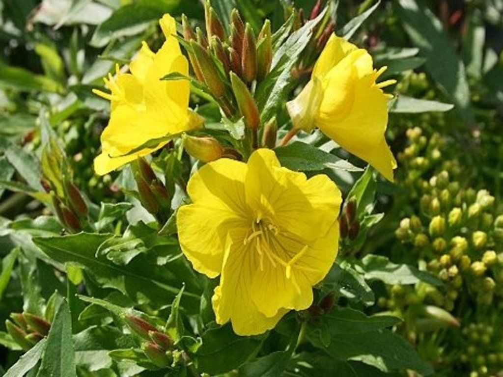 Nachtkerze - bis zu 70 cm hohe Staude mit Büscheln leuchtend gelber, becherförmiger Blüten. Sie blüht von Juni bis August. Geeignet für leicht feuchte, humose, sandige Böden, an einem sonnigen Standort. Ideal für größere Steingärten.