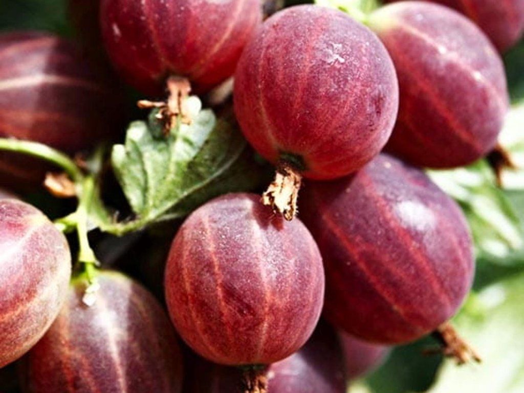 Stachelbeere 'Red Triumph' <\/strong>- eine attraktive Sorte aus Großbritannien, die sich durch frühe bis mittelfrühe Reife auszeichnet und zu den beliebten rotfrüchtigen Stachelbeersorten gehört. Sie wächst mittelstark, bildet einen kompakten, leicht ausladenden Habitus und die Äste tragen eine geringe bis mittlere Dornenanzahl, was die Ernte und Pflege erleichtert. Die Früchte sind mittelgroß bis groß, oval bis kugelförmig, mit einer weinroten Schale und einem saftigen Fruchtfleisch mit süß-saurer Geschmacksnote – geeignet sowohl für den Frischverzehr als auch für die Verarbeitung zu Marmeladen, Kompott oder Most. Die Reife tritt normalerweise Anfang Juli ein. Die Früchte enthalten eine signifikante Menge an Vitamin C, Pektinen und Antioxidantien, die zur Stärkung des Immunsystems und der Verdauung beitragen. Sie verfügt über ein gutes Verhältnis von Frostbeständigkeit und Krankheitsresistenz, sodass sie auch für den Anbau in kälteren Regionen geeignet ist, mit leicht reduzierten Anforderungen an den Pflanzenschutz.