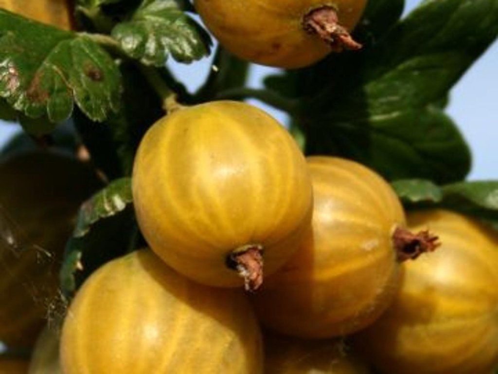 Stachelbeere Crispa®Goldling® - eine ausgezeichnete Stachelbeersorte aus der Crispa®-Reihe zeichnet sich durch ihre großen, goldgelben Früchte und ihren süßen, sehr saftigen Geschmack aus. Wächst schnell, hat einen kompakten Habitus und normale Dornen. Die Früchte sind sehr groß, mit einer dünnen Schale und goldenen Äderchen, was ihnen ein attraktives Aussehen verleiht. Sie reifen mittelfrüh, etwa ab Mitte Juli. Die Sorte ist bekannt für ihre Mehltau-Toleranz und ihr gesundes, vitales Wachstum auch bei weniger günstigem Wetter. Die Früchte eignen sich hervorragend zum direkten Verzehr, aber auch zur Verarbeitung – für Marmeladen, Kompotte oder Desserts.