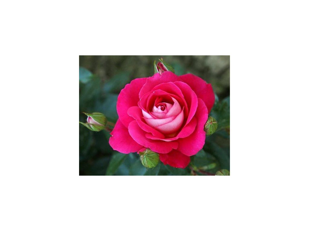 Rose 'Gavotte' - sehr schöne großblumige Rose mit tiefrosa Blüten, die von der Mitte her eine weißliche bis leicht gelbliche Tönung erhalten. Blüht von Juni bis September. Wir bieten sie als Hochstammveredelung in 110 cm Höhe an.