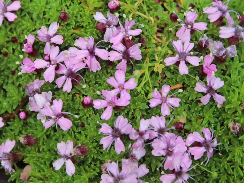 Silene acaulis 'Mount Snowdon' - eine ausdauernde Gebirgspflanze aus der Familie der Caryophyllaceae, die natürlich in den alpinen Regionen Europas, Skandinaviens und Nordamerikas verbreitet ist. Die Sorte 'Mount Snowdon' stammt aus einer Auswahl von Pflanzen mit außergewöhnlich dichtem, polsterartigem Wuchs und gleichmäßiger Blüte. Im Erwachsenenalter erreicht sie eine Höhe von etwa 5-10 cm und eine Breite von 20-30 cm, wobei sie sehr feste, kompakte Polster bildet. Die Blätter sind klein, schmal, dunkelgrün und dicht gedrängt, was die Pflanze vor Austrocknung und Kälte schützt. Von Mai bis Juni erscheinen einzelne, fünfzählige, hellrosa Blüten, die über die gesamte Oberfläche des Polsters verteilt sind. Die Blüten sind attraktiv für kleine Bestäuber und schaffen ein typisches Bild der Gebirgsflora. Silene acaulis wird besonders in Steingärten, Alpinarien, Trögen und Trockenmauern eingesetzt, wo sie natürlich und langfristig stabil wirkt, oft in Kombination mit Steinbrech, Silberwurz oder niedrigen Fetthennen.