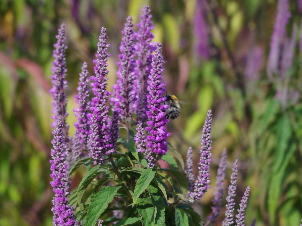 Bartblume - ein kleiner laubabwerfender Strauch, der aus China stammt und dort an sonnigen Hängen und in Gebüschen wächst. In europäischen Gärten wird sie als laubabwerfender Strauch oder Halbstrauch mit einem natürlich ausladenden Habitus kultiviert, der normalerweise 0,8–1,5 m hoch und ähnlich breit wird. Die Blätter sind gegenständig, eiförmig-lanzettlich, gesägt, bei Berührung deutlich aromatisch mit einem minzig-zitronigen Ton und färben sich im Herbst oft rot. Die Blüten sind klein, röhrenförmig und in dichten, aufrechten Ähren von etwa 10–20 cm Länge angeordnet. Die Blütenfarbe reicht von hellviolett bis violett-rosa, und die Hauptblütezeit fällt auf August bis Oktober, wenn die Pflanze von Bienen und Schmetterlingen besucht wird. Im Beet harmoniert sie gut mit Perowskien, Sonnenhüten und Ziergräsern, in wärmeren Lagen kann sie auch eine niedrige Hecke bilden. Die aromatischen Blätter werden in einigen Küchen ähnlich wie Minze oder Melisse verwendet, meist in Teemischungen und zur leichten Aromatisierung von Speisen. Diese interessante Pflanze sollte in keinem Garten fehlen.
