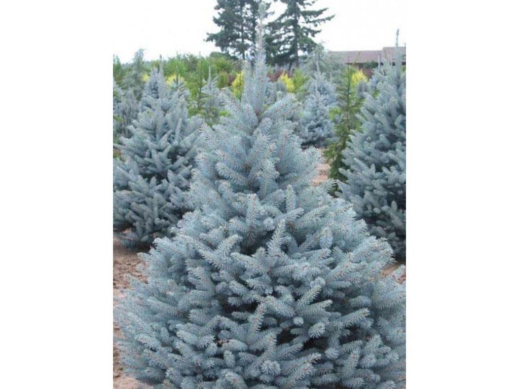 Blaufichte, auch Silberfichte genannt. Ein schöner Nadelbaum, der aus Nordamerika stammt, wo er an den Ufern von Gebirgsflüssen und auch an sumpfigen Orten wächst. Er gedeiht sowohl auf Schwarzerdeböden in der Steppenzone als auch auf Torf- und vernässten Böden. Die Nadeln sind länger, steif und stark stechend. Sie haben eine mattgrüne, graugrüne bis silbrig-weiße Farbe und weisen auf jeder Seite 3–6 Reihen von Spaltöffnungen auf. Die Zapfen sind weich, zylindrisch-länglich, in der Jugend meist grün, in der Reife hellbraun. Sie erreicht eine Höhe von 30 m, selten bis 50 m. Die Krone ist dicht verzweigt mit horizontalen, kegelförmigen Ästen. Er ist eine der beliebtesten, gärtnerisch genutzten Fichten, sowohl in Parks als auch in kleinen Gärten. Sie wird in vielen Kultivaren angebaut. Besonders Kultivare mit grauem oder blaugrauem Nadelwerk sind sehr dekorativ, besonders im jungen Alter, d.h. bis 20–30 Jahre. Er wächst auch verhältnismäßig gut in der verschmutzten Luft großer Städte und in der Nähe von Fabriken, wo andere Nadelbäume leiden. Dank ihres langsamen Wachstums eignet sie sich auch für kleine Gärten.