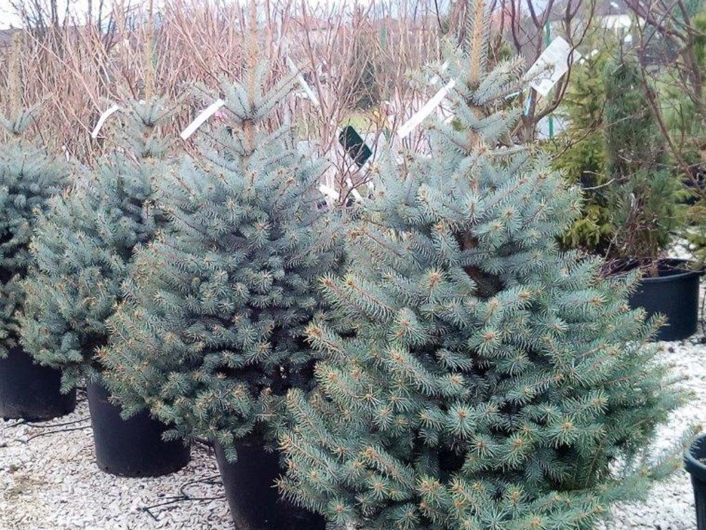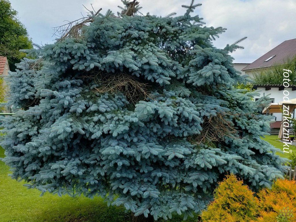 Blaufichte, auch Silberfichte genannt. Ein schöner Nadelbaum, der aus Nordamerika stammt, wo er an den Ufern von Gebirgsflüssen und auch an sumpfigen Orten wächst. Er gedeiht sowohl auf Schwarzerdeböden in der Steppenzone als auch auf Torf- und vernässten Böden. Die Nadeln sind länger, steif und stark stechend. Sie haben eine mattgrüne, graugrüne bis silbrig-weiße Farbe und weisen auf jeder Seite 3–6 Reihen von Spaltöffnungen auf. Die Zapfen sind weich, zylindrisch-länglich, in der Jugend meist grün, in der Reife hellbraun. Sie erreicht eine Höhe von 30 m, selten bis 50 m. Die Krone ist dicht verzweigt mit horizontalen, kegelförmigen Ästen. Er ist eine der beliebtesten, gärtnerisch genutzten Fichten, sowohl in Parks als auch in kleinen Gärten. Sie wird in vielen Kultivaren angebaut. Besonders Kultivare mit grauem oder blaugrauem Nadelwerk sind sehr dekorativ, besonders im jungen Alter, d.h. bis 20–30 Jahre. Er wächst auch verhältnismäßig gut in der verschmutzten Luft großer Städte und in der Nähe von Fabriken, wo andere Nadelbäume leiden. Dank ihres langsamen Wachstums eignet sie sich auch für kleine Gärten.