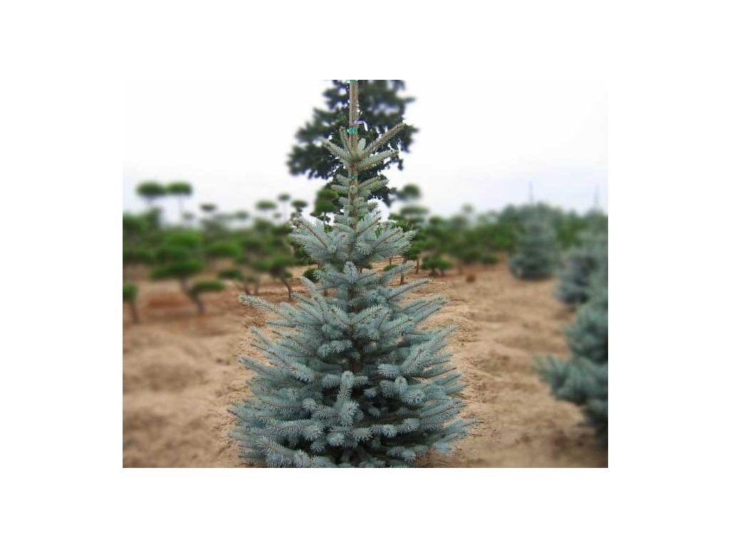 Blaufichte, auch Silberfichte genannt. Ein schöner Nadelbaum, der aus Nordamerika stammt, wo er an den Ufern von Gebirgsflüssen und auch an sumpfigen Orten wächst. Er gedeiht sowohl auf Schwarzerdeböden in der Steppenzone als auch auf Torf- und vernässten Böden. Die Nadeln sind länger, steif und stark stechend. Sie haben eine mattgrüne, graugrüne bis silbrig-weiße Farbe und weisen auf jeder Seite 3–6 Reihen von Spaltöffnungen auf. Die Zapfen sind weich, zylindrisch-länglich, in der Jugend meist grün, in der Reife hellbraun. Sie erreicht eine Höhe von 30 m, selten bis 50 m. Die Krone ist dicht verzweigt mit horizontalen, kegelförmigen Ästen. Er ist eine der beliebtesten, gärtnerisch genutzten Fichten, sowohl in Parks als auch in kleinen Gärten. Sie wird in vielen Kultivaren angebaut. Besonders Kultivare mit grauem oder blaugrauem Nadelwerk sind sehr dekorativ, besonders im jungen Alter, d.h. bis 20–30 Jahre. Er wächst auch verhältnismäßig gut in der verschmutzten Luft großer Städte und in der Nähe von Fabriken, wo andere Nadelbäume leiden. Dank ihres langsamen Wachstums eignet sie sich auch für kleine Gärten.