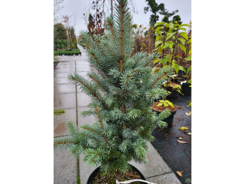 Blaufichte, auch Silberfichte genannt. Ein schöner Nadelbaum, der aus Nordamerika stammt, wo er an den Ufern von Gebirgsflüssen und auch an sumpfigen Orten wächst. Er gedeiht sowohl auf Schwarzerdeböden in der Steppenzone als auch auf Torf- und vernässten Böden. Die Nadeln sind länger, steif und stark stechend. Sie haben eine mattgrüne, graugrüne bis silbrig-weiße Farbe und weisen auf jeder Seite 3–6 Reihen von Spaltöffnungen auf. Die Zapfen sind weich, zylindrisch-länglich, in der Jugend meist grün, in der Reife hellbraun. Sie erreicht eine Höhe von 30 m, selten bis 50 m. Die Krone ist dicht verzweigt mit horizontalen, kegelförmigen Ästen. Er ist eine der beliebtesten, gärtnerisch genutzten Fichten, sowohl in Parks als auch in kleinen Gärten. Sie wird in vielen Kultivaren angebaut. Besonders Kultivare mit grauem oder blaugrauem Nadelwerk sind sehr dekorativ, besonders im jungen Alter, d.h. bis 20–30 Jahre. Er wächst auch verhältnismäßig gut in der verschmutzten Luft großer Städte und in der Nähe von Fabriken, wo andere Nadelbäume leiden. Dank ihres langsamen Wachstums eignet sie sich auch für kleine Gärten.