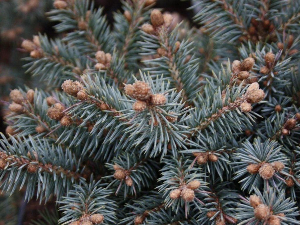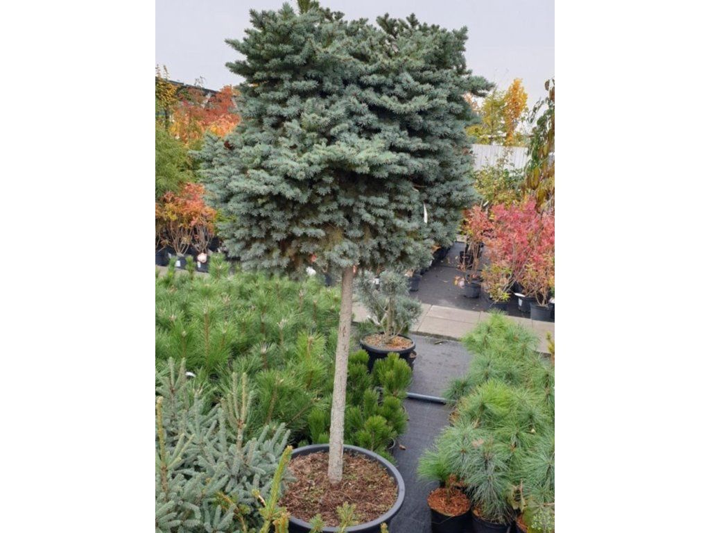 Blaufichte, auch Silberfichte genannt. Ein schöner Nadelbaum, der aus Nordamerika stammt, wo er an den Ufern von Gebirgsflüssen und auch an sumpfigen Orten wächst. Er gedeiht sowohl auf Schwarzerdeböden in der Steppenzone als auch auf Torf- und vernässten Böden. Die Nadeln sind länger, steif und stark stechend. Sie haben eine mattgrüne, graugrüne bis silbrig-weiße Farbe und weisen auf jeder Seite 3–6 Reihen von Spaltöffnungen auf. Die Zapfen sind weich, zylindrisch-länglich, in der Jugend meist grün, in der Reife hellbraun. Sie erreicht eine Höhe von 30 m, selten bis 50 m. Die Krone ist dicht verzweigt mit horizontalen, kegelförmigen Ästen. Er ist eine der beliebtesten, gärtnerisch genutzten Fichten, sowohl in Parks als auch in kleinen Gärten. Sie wird in vielen Kultivaren angebaut. Besonders Kultivare mit grauem oder blaugrauem Nadelwerk sind sehr dekorativ, besonders im jungen Alter, d.h. bis 20–30 Jahre. Er wächst auch verhältnismäßig gut in der verschmutzten Luft großer Städte und in der Nähe von Fabriken, wo andere Nadelbäume leiden. Dank ihres langsamen Wachstums eignet sie sich auch für kleine Gärten.