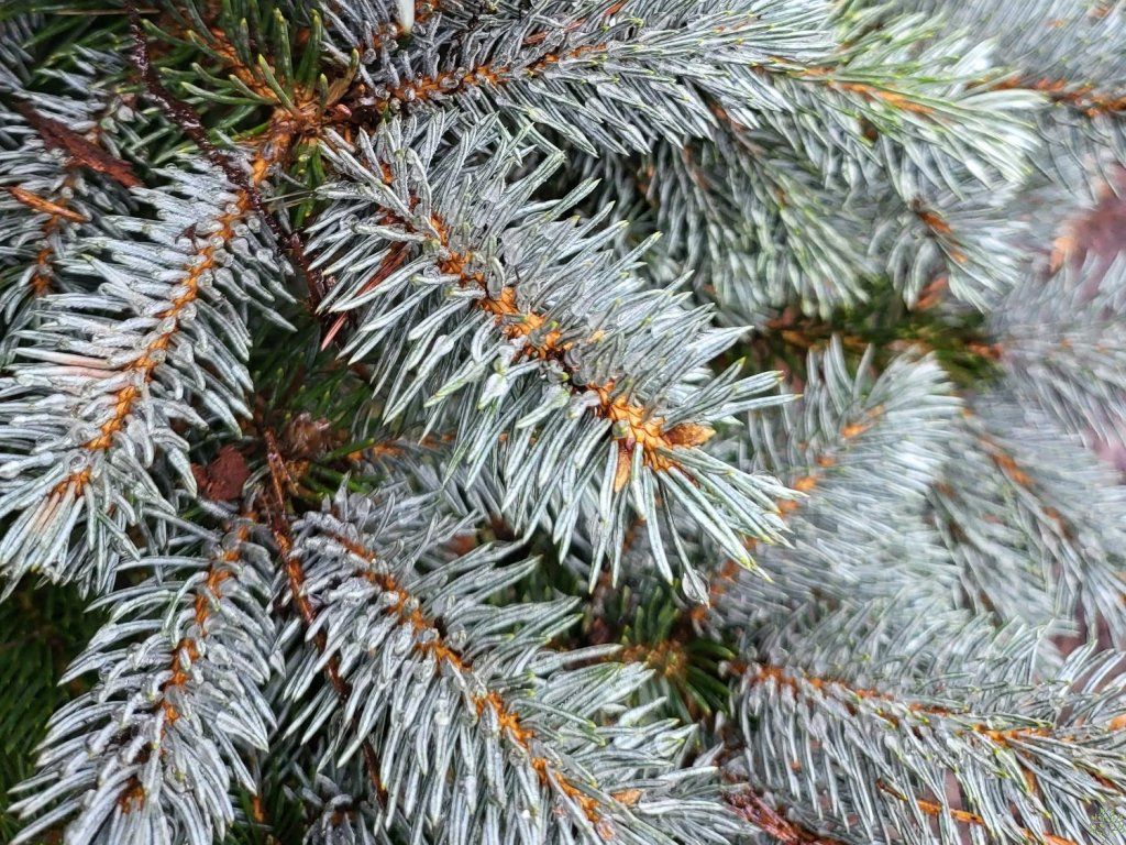 Blaufichte, auch Silberfichte genannt. Ein schöner Nadelbaum, der aus Nordamerika stammt, wo er an den Ufern von Gebirgsflüssen und auch an sumpfigen Orten wächst. Er gedeiht sowohl auf Schwarzerdeböden in der Steppenzone als auch auf Torf- und vernässten Böden. Die Nadeln sind länger, steif und stark stechend. Sie haben eine mattgrüne, graugrüne bis silbrig-weiße Farbe und weisen auf jeder Seite 3–6 Reihen von Spaltöffnungen auf. Die Zapfen sind weich, zylindrisch-länglich, in der Jugend meist grün, in der Reife hellbraun. Sie erreicht eine Höhe von 30 m, selten bis 50 m. Die Krone ist dicht verzweigt mit horizontalen, kegelförmigen Ästen. Er ist eine der beliebtesten, gärtnerisch genutzten Fichten, sowohl in Parks als auch in kleinen Gärten. Sie wird in vielen Kultivaren angebaut. Besonders Kultivare mit grauem oder blaugrauem Nadelwerk sind sehr dekorativ, besonders im jungen Alter, d.h. bis 20–30 Jahre. Er wächst auch verhältnismäßig gut in der verschmutzten Luft großer Städte und in der Nähe von Fabriken, wo andere Nadelbäume leiden. Dank ihres langsamen Wachstums eignet sie sich auch für kleine Gärten.