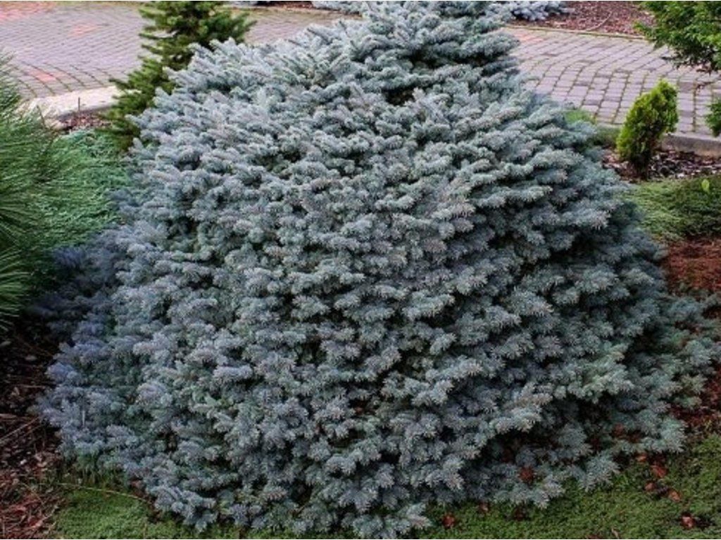 Blaufichte 'Glauca Globosa' – eine beliebte Zierform, die Frost-, Wind- und wechselbeständig ist. Die Sorte 'Glauca Globosa' wurde in der ersten Hälfte des 20. Jahrhunderts im niederländischen Boskoop als Zwergform mit tiefblauen Nadeln und einer flachkugeligen Wuchsform ausgewählt. Unter mitteleuropäischen Bedingungen erreicht sie im Erwachsenenalter eine Höhe von etwa 1,5–2,5 m und eine Breite von etwa 2 m, wobei die jährlichen Zuwächse meist um 8–10 cm liegen, sodass die Pflanze lange als niedriger, kompakter Strauch wirkt. Anfangs hat sie die Form einer abgeflachten Kugel, mit dem Alter geht sie in eine breit kegelförmige bis kissenförmige Wuchsform mit sehr dichter Verzweigung über. Die Nadeln sind 2–3 cm lang, kräftig, vierkantig und stark stechend, strahlenförmig um die Triebe angeordnet und auf beiden Seiten matt bis silbrig blau. Die intensivste Farbe haben die Frühlingszuwachse, die mehrere Wochen lang einen helleren Saum am Kronenrand bilden und sich sanft vom älteren Nadelwerk abheben. Ältere Exemplare können eine geringe Menge hängender bräunlicher Zapfen bilden, die den natürlichen Charakter des Gehölzes weiter unterstreichen. Dank seiner geringen Größe und seines kompakten Wuchses eignet sich 'Glauca Globosa' für Vorgärten, Heidegärten, Steingärten und als niedriger Akzent im Rasen. Er eignet sich auch für ausreichend große Behälter auf Terrassen und an Eingängen, wo er ganzjährige Struktur und farbliche Kontraste zu Laubsträuchern und Ziergräsern bietet.