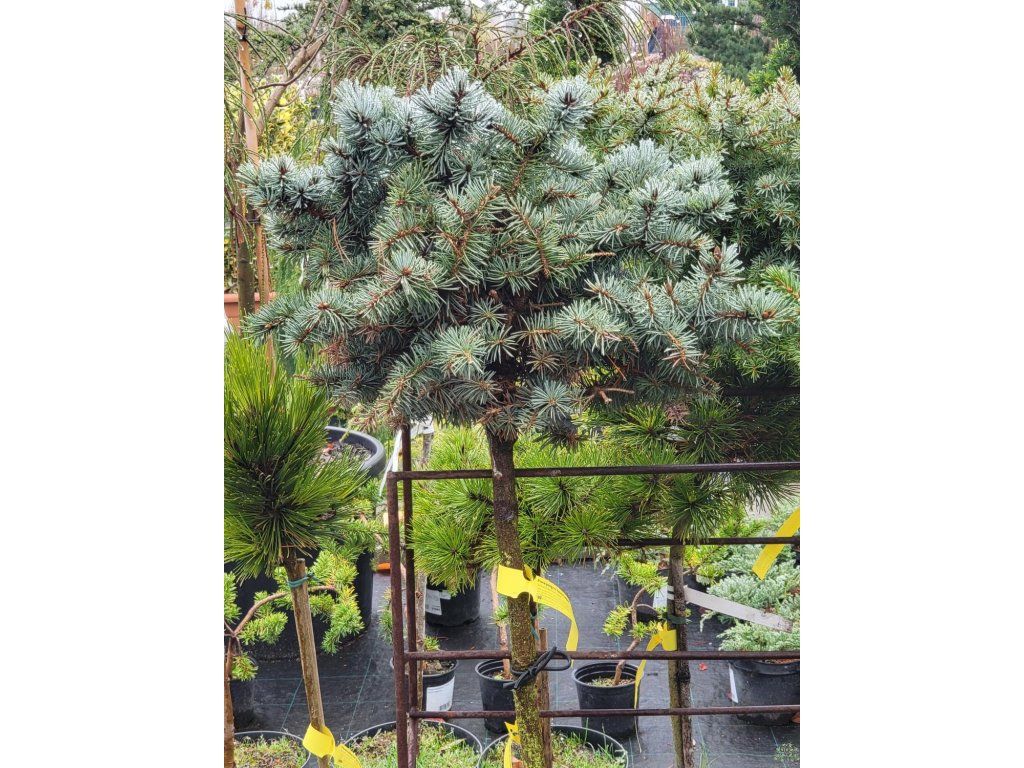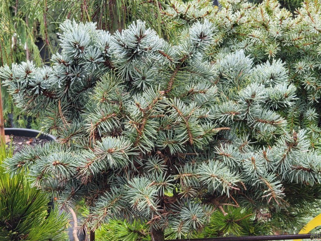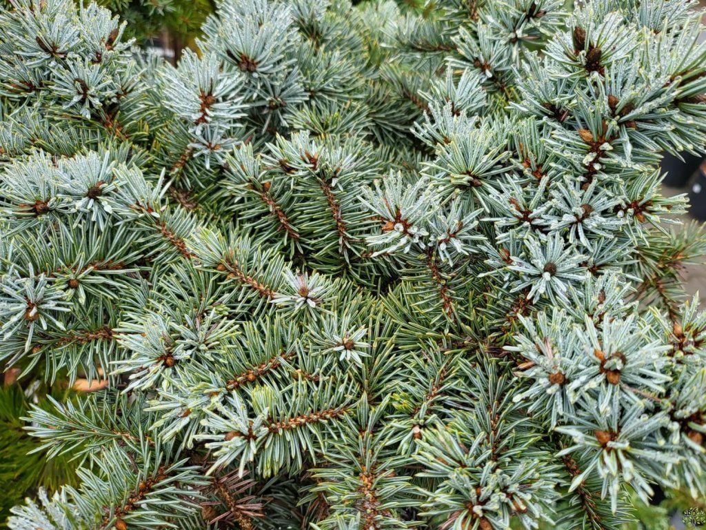 Blaufichte, auch Silberfichte genannt. Ein schöner Nadelbaum, der aus Nordamerika stammt, wo er an den Ufern von Gebirgsflüssen und auch an sumpfigen Orten wächst. Er gedeiht sowohl auf Schwarzerdeböden in der Steppenzone als auch auf Torf- und vernässten Böden. Die Nadeln sind länger, steif und stark stechend. Sie haben eine mattgrüne, graugrüne bis silbrig-weiße Farbe und weisen auf jeder Seite 3–6 Reihen von Spaltöffnungen auf. Die Zapfen sind weich, zylindrisch-länglich, in der Jugend meist grün, in der Reife hellbraun. Sie erreicht eine Höhe von 30 m, selten bis 50 m. Die Krone ist dicht verzweigt mit horizontalen, kegelförmigen Ästen. Er ist eine der beliebtesten, gärtnerisch genutzten Fichten, sowohl in Parks als auch in kleinen Gärten. Sie wird in vielen Kultivaren angebaut. Besonders Kultivare mit grauem oder blaugrauem Nadelwerk sind sehr dekorativ, besonders im jungen Alter, d.h. bis 20–30 Jahre. Er wächst auch verhältnismäßig gut in der verschmutzten Luft großer Städte und in der Nähe von Fabriken, wo andere Nadelbäume leiden. Dank ihres langsamen Wachstums eignet sie sich auch für kleine Gärten.