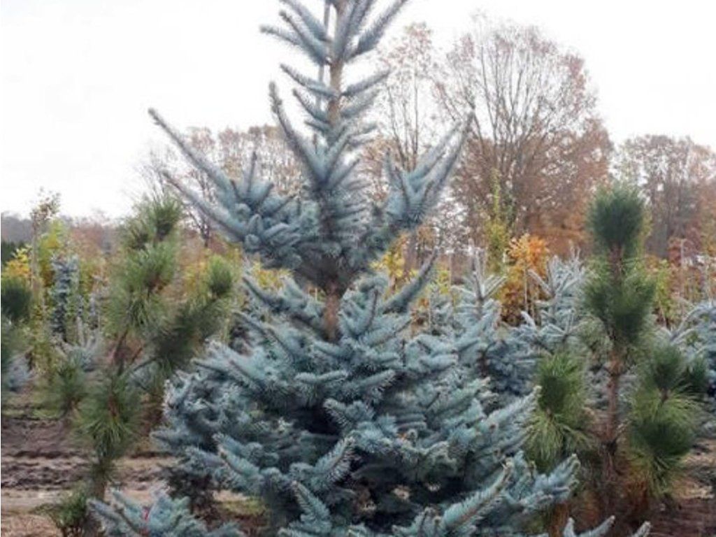 Blaufichte, auch Silberfichte genannt. Ein schöner Nadelbaum, der aus Nordamerika stammt, wo er an den Ufern von Gebirgsflüssen und auch an sumpfigen Orten wächst. Er gedeiht sowohl auf Schwarzerdeböden in der Steppenzone als auch auf Torf- und vernässten Böden. Die Nadeln sind länger, steif und stark stechend. Sie haben eine mattgrüne, graugrüne bis silbrig-weiße Farbe und weisen auf jeder Seite 3–6 Reihen von Spaltöffnungen auf. Die Zapfen sind weich, zylindrisch-länglich, in der Jugend meist grün, in der Reife hellbraun. Sie erreicht eine Höhe von 30 m, selten bis 50 m. Die Krone ist dicht verzweigt mit horizontalen, kegelförmigen Ästen. Er ist eine der beliebtesten, gärtnerisch genutzten Fichten, sowohl in Parks als auch in kleinen Gärten. Sie wird in vielen Kultivaren angebaut. Besonders Kultivare mit grauem oder blaugrauem Nadelwerk sind sehr dekorativ, besonders im jungen Alter, d.h. bis 20–30 Jahre. Er wächst auch verhältnismäßig gut in der verschmutzten Luft großer Städte und in der Nähe von Fabriken, wo andere Nadelbäume leiden. Dank ihres langsamen Wachstums eignet sie sich auch für kleine Gärten.