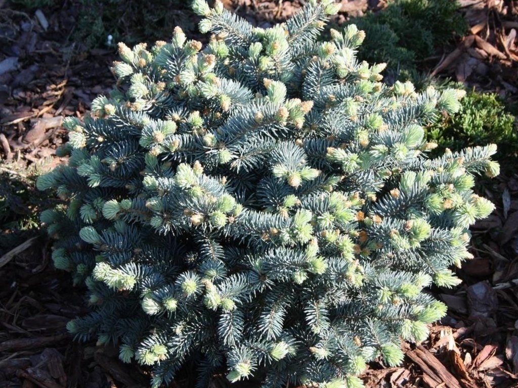 Pflege: Bevorzugt einen vollsonnigen Standort, der die intensive Färbung der Frühlingszuwächse und ein kompaktes Kronenwachstum fördert. Der Boden sollte fruchtbar, mittelschwer bis lehmig-sandig, gut durchlässig und dauerhaft leicht feucht sein, jedoch nicht dauerhaft vernässt. Am besten geeignet sind Böden mit saurer bis leicht saurer Reaktion, etwa im Bereich von pH 5–6,5, weshalb dem Pflanzloch oft Torf oder Nadelstreu beigemischt wird. Um den Wurzelballen herum ist Rindenmulch empfehlenswert, der Temperaturschwankungen und Austrocknung des Bodens reduziert und gleichzeitig das flache Wurzelsystem schützt. Containerpflanzen werden von März bis Oktober gepflanzt. In warmen und trockenen Perioden ist eine regelmäßige Bewässerung vorteilhaft, insbesondere in den ersten zwei bis drei Jahren nach der Pflanzung. Nach dem Einwurzeln verträgt die Fichte vorübergehende Trockenheit, jedoch führen langanhaltende Trockenperioden zu einem Austrocknen der Triebspitzen, besonders in städtischer Umgebung. Die Frostbeständigkeit des Kultivars liegt bei etwa –26 °C. In normalen Wintern in Ebenen und Mittelgebirgen bereitet der Winterschutz keine Probleme, junge Pflanzen in Behältern überwintern jedoch besser geschützt oder nach dem Einlassen des Behälters in den Boden. Die Düngung ist sparsam. Im Frühjahr genügt eine einmalige Gabe von Dünger für Zierkoniferen, die ein gleichmäßiges Wachstum ohne übermäßige Verlängerung der Triebe fördert. Der Schnitt beschränkt sich auf das Entfernen trockener, erfrorener oder beschädigter Äste; eine grundlegende Formgebung ist nicht notwendig. Bei ungünstigen Bedingungen können Pilzkrankheiten des Nadelwerks auftreten, und Schädlinge wie Spinnmilben oder Blattläuse können vorkommen. Ein luftiger Standort, gleichmäßige Feuchtigkeit und eine nicht übermäßige Stickstoffdüngung reduzieren ihr Auftreten erheblich. Bei Gruppenpflanzungen wird ein Abstand von mindestens 2,5–3 m zwischen den einzelnen Pflanzen oder größeren Gehölzen empfohlen, damit die Sorte genügend Platz hat, ihre volle Form und Farbe zu entfalten.