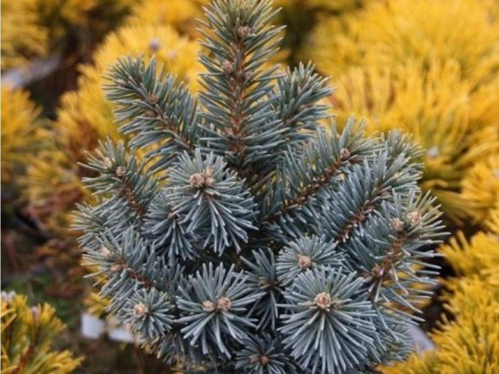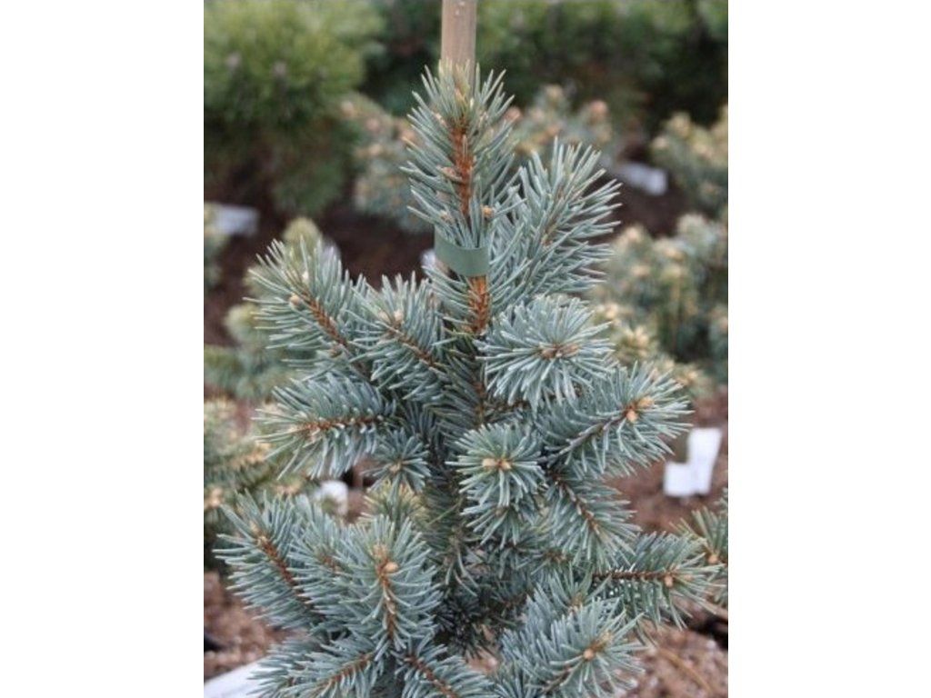 Blaufichte, auch Silberfichte genannt. Ein schöner Nadelbaum, der aus Nordamerika stammt, wo er an den Ufern von Gebirgsflüssen und auch an sumpfigen Orten wächst. Er gedeiht sowohl auf Schwarzerdeböden in der Steppenzone als auch auf Torf- und vernässten Böden. Die Nadeln sind länger, steif und stark stechend. Sie haben eine mattgrüne, graugrüne bis silbrig-weiße Farbe und weisen auf jeder Seite 3–6 Reihen von Spaltöffnungen auf. Die Zapfen sind weich, zylindrisch-länglich, in der Jugend meist grün, in der Reife hellbraun. Sie erreicht eine Höhe von 30 m, selten bis 50 m. Die Krone ist dicht verzweigt mit horizontalen, kegelförmigen Ästen. Er ist eine der beliebtesten, gärtnerisch genutzten Fichten, sowohl in Parks als auch in kleinen Gärten. Sie wird in vielen Kultivaren angebaut. Besonders Kultivare mit grauem oder blaugrauem Nadelwerk sind sehr dekorativ, besonders im jungen Alter, d.h. bis 20–30 Jahre. Er wächst auch verhältnismäßig gut in der verschmutzten Luft großer Städte und in der Nähe von Fabriken, wo andere Nadelbäume leiden. Dank ihres langsamen Wachstums eignet sie sich auch für kleine Gärten.