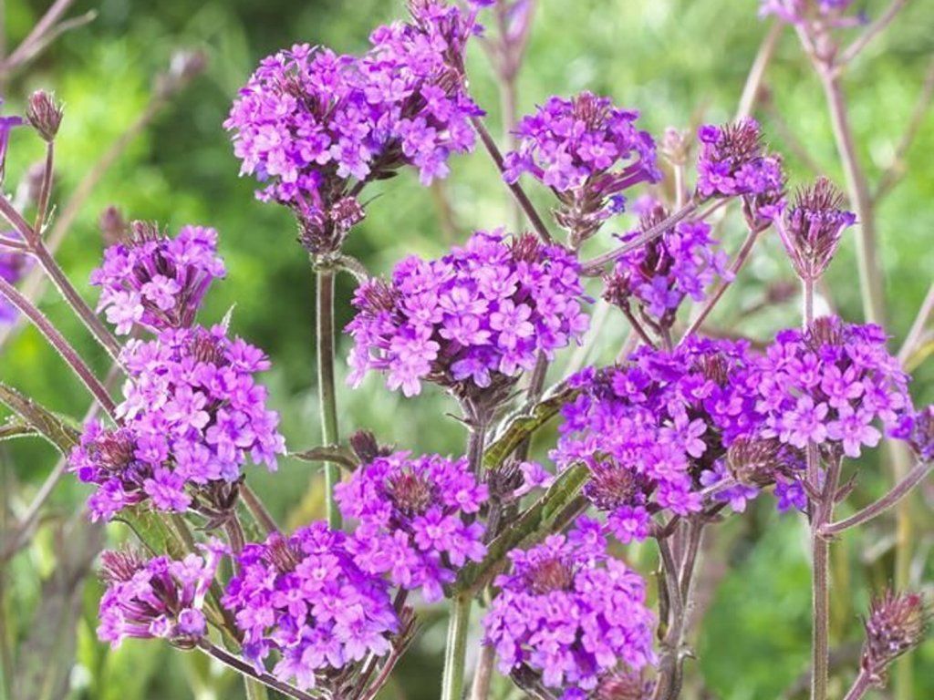 Argentinische Eisenkraut - eine niedrige, kriechende Staude aus Südamerika, geschätzt für ihre intensiv purpurvioletten Blüten und ihre lange Blütezeit. Sie bildet dichte Büschel von steifen, vierkantigen Stängeln, die längliche, raue Blätter mit gezacktem Rand tragen. Sie erreicht normalerweise eine Höhe von etwa 30 bis 40 cm. Von Juni bis zu den ersten Frösten blüht sie reichlich mit kleinen Blüten, die in dichten Blütenständen angeordnet sind und Bienen, Schmetterlinge und andere Bestäuber anlocken. In wärmeren Gebieten kann sie als Staude angebaut werden, in kälteren Gebieten wird sie oft als einjährige Pflanze angebaut oder überwintert in einem hellen, frostfreien Raum. Dank ihres Bodendeckerwachstums und ihrer satten Farben ist sie beliebt in Staudenbeeten, Kübeln oder auch in Kiesgärten.