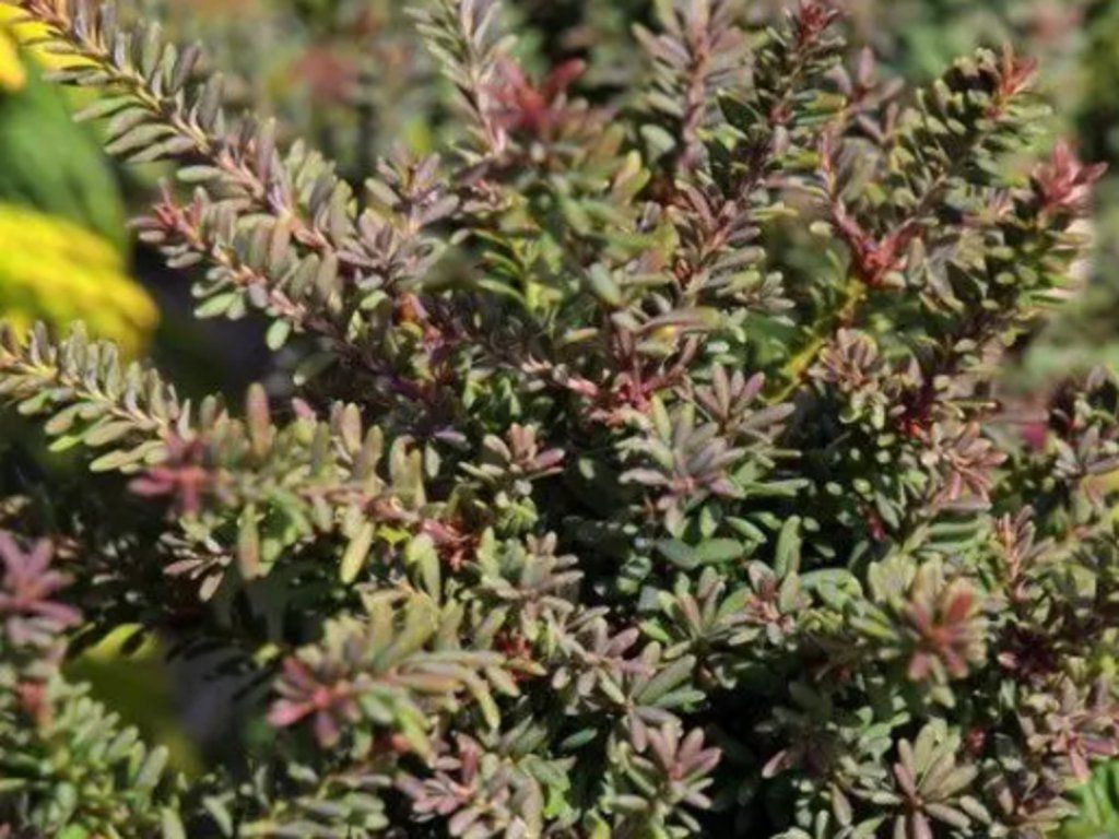Steineibe 'Red Kiss' - niedriger, langsam wachsender Nadelstrauch aus der Familie der Steineibengewächse (Podocarpaceae), der aus den Bergregionen Australiens und Tasmaniens stammt. Die Sorte 'Red Kiss' wird für ihr kompaktes Wachstum, ihre feinen, dunkelgrünen Nadeln und ihre auffälligen roten Triebe geschätzt, die vor allem im Frühjahr erscheinen und der Pflanze ein attraktives Aussehen verleihen. Diese Sorte erreicht in der Regel eine Höhe von etwa 0,5 bis 1 Meter und eine ähnliche Breite. Sie bildet einen dichten, regelmäßigen Strauch, der sich für kleinere Gärten, Heidegärten, japanische Gärten oder als niedrige Hecke oder Beetbegrenzung eignet. Diese Pflanze besticht nicht nur durch ihre elegante Struktur und ihren Farbeffekt, sondern auch durch ihre Pflegeleichtigkeit. Sie eignet sich für Liebhaber weniger bekannter und dekorativer Gehölze mit ganzjähriger Zierwirkung.