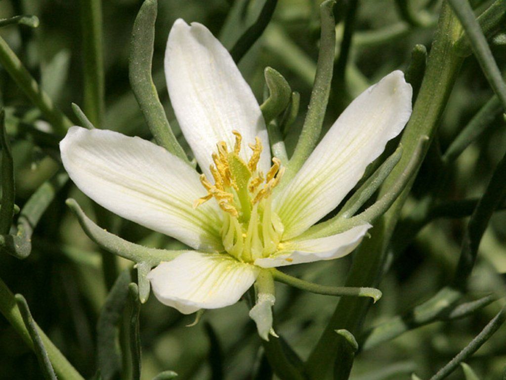 Steppenraute - interessante und anspruchslose Staude, die im Erwachsenenalter eine Höhe von etwa 30 - 100 cm erreicht. Die Blätter sind klein, schmal und haben eine satte dunkelgrüne Farbe mit einem feinen grauen Schimmer. Sie wachsen entlang der gesamten Länge der grünen Stängel. Die Blüten bestehen aus 5 - 6 zarten, schmalen Blütenblättern, die schneeweiß gefärbt sind, mit einem zarten grünen Streifen in der Mitte der Blütenblätter. In der Mitte der Blüte befinden sich grüne Staubgefäße mit gelben Staubbeuteln. Diese Pflanze wird in einigen Ländern häufig für Heilzwecke verwendet, wird aber als Zusatz zu Räucherwerk verwendet. Die Pflanze allein ist nicht essbar. Sie ist ideal für die Pflanzung in Beeten oder Containern.