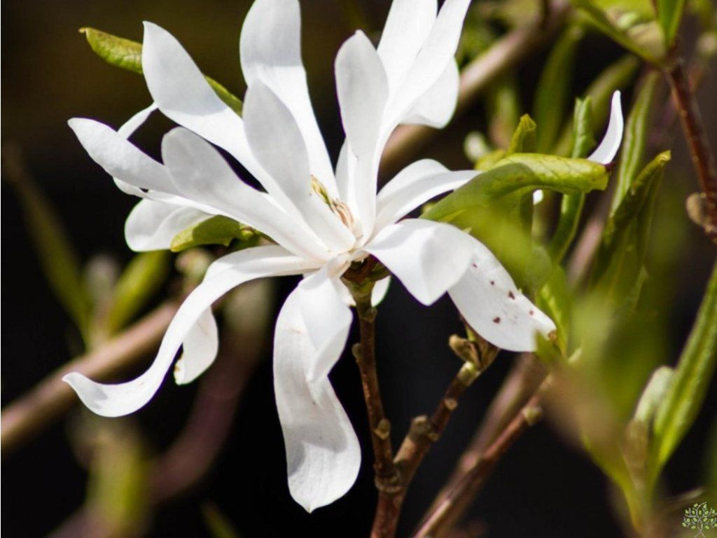 Sternblühende Magnolie 'Royal Star' - eine beliebte Magnolienart, die sich durch ihre prächtige Blüte und ihr kompaktes Wachstum auszeichnet. Magnolia stellata 'Royal Star' ist ein laubabwerfender Strauch mit einer runden, breit ausgebreiteten Wuchsform, der normalerweise eine Höhe von 2-3 m erreicht. Sein Habitus ist kompakt und kugelförmig, was ihn zur idealen Wahl für kleinere Gärten oder zur Platzierung im Vordergrund größerer Beete macht. Das auffälligste Merkmal sind ihre wunderschönen Blüten. Sie blüht im frühen Frühling, normalerweise von März bis April, bevor die neuen Blätter erscheinen. Die Blüten sind weiß und sternförmig, ein typisches Merkmal der Art Magnolia stellata. Die Blätter sind wechselständig, oval geformt und dunkelgrün gefärbt. Im Herbst können sie gelbe bis bronzefarbene Töne annehmen. Magnolien werden für ihre frühe und üppige Blüte geschätzt, was sie zu einer außergewöhnlichen Wahl für Gärtner macht, die im Frühling eine attraktive Pflanze suchen.