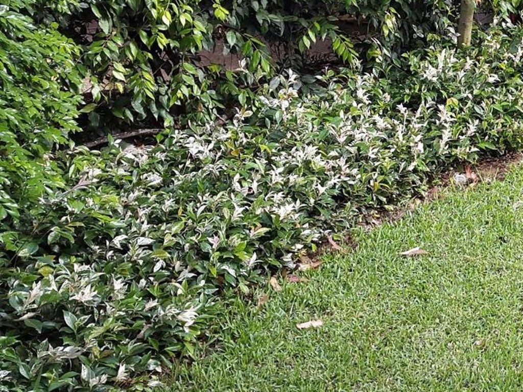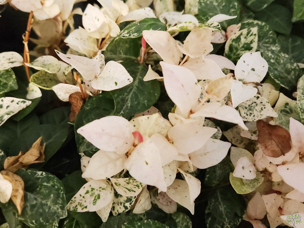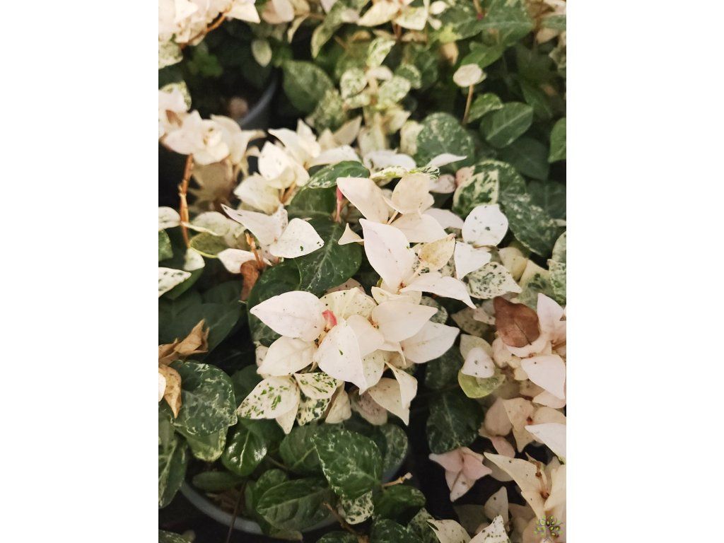 Jasminum Tricolor' - wunderschön gefärbte Sorte des duftenden Jasmins. Am attraktivsten sind eindeutig die immergrünen Blätter, die beim Austrieb in Weiß- und Rosatönen gefärbt sind, was einen bunten Kontrast zu älteren, grünen Blättern bildet. Die Blüten sind bei diesem Kultivar eher unscheinbar. Er wächst relativ langsam zu einem kompakten Strauch von 30 cm Höhe und 100 cm Breite, je nach Kulturbedingungen. Er erfüllt somit hervorragend die Aufgabe eines niedrigen Zauns, der Begrenzung von Gehwegen oder kann in einem Behälter angebaut werden.