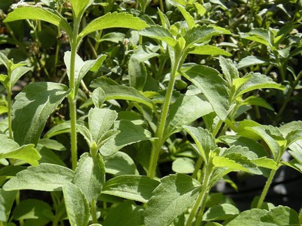 Stevia - ist eine verzweigte, ausdauernde krautige Pflanze, die im ausgewachsenen Zustand eine Höhe von bis zu 80 cm erreicht. Unter unseren Bedingungen ist sie normalerweise etwa 50 cm hoch. An den gegenständigen Blättern und Stängeln können wir in der Jugend eine sehr feine Behaarung erkennen. Die Blüten sind klein, unscheinbar und weiß. Sie ist ein guter Helfer im Kampf gegen überschüssige Kilogramme. Stevia stillt das Verlangen nach Süßem und belastet den Körper gleichzeitig nicht mit Kalorien oder Zucker. Alle süßen Stoffe sind in der gesamten Pflanze enthalten, außer den Wurzeln. In den Blättern befindet sich die Substanz Steviosid, die für den süßen Geschmack der Pflanze verantwortlich ist. Sie wird als Zuckersatz in Getränken und einigen Lebensmitteln verwendet.