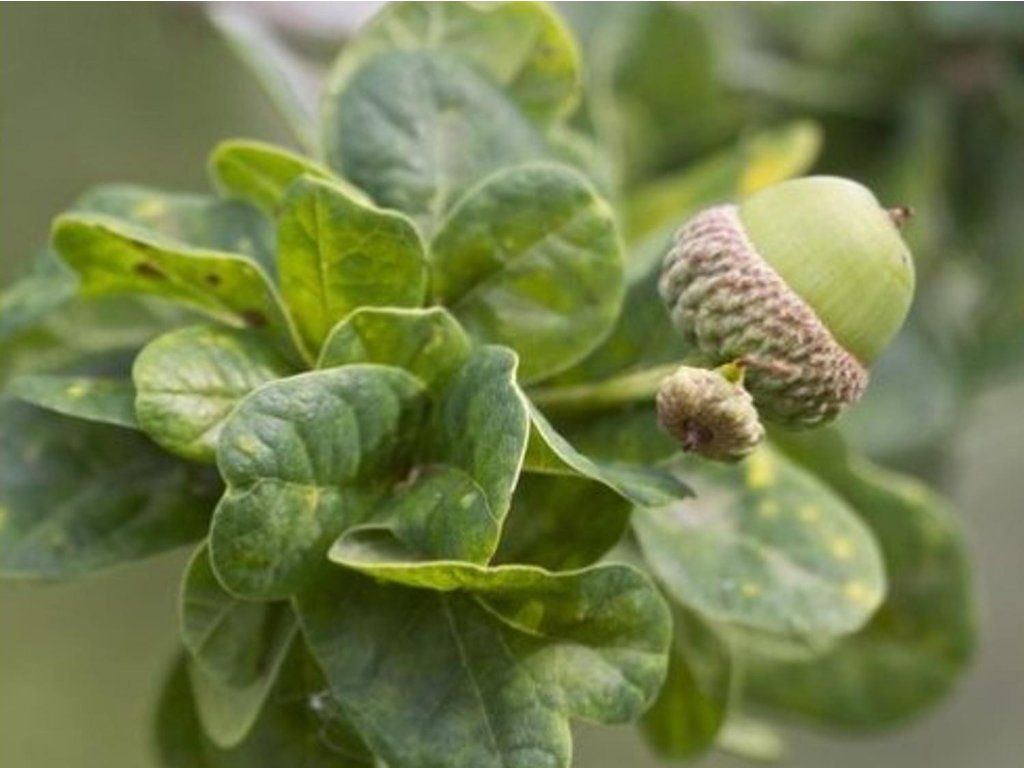 Sommereiche 'Cristata' - mittelgroßer, langsam wachsender Baum mit unregelmäßig geformter Krone, der eine Höhe von 6-10 m erreicht. Die Blätter bilden dichte Büschel an den Enden der Zweige und haben eine frischgrüne Farbe. Die Früchte bilden kleine Eicheln.