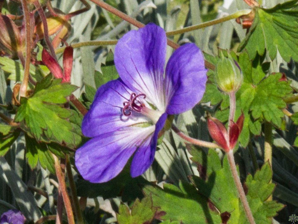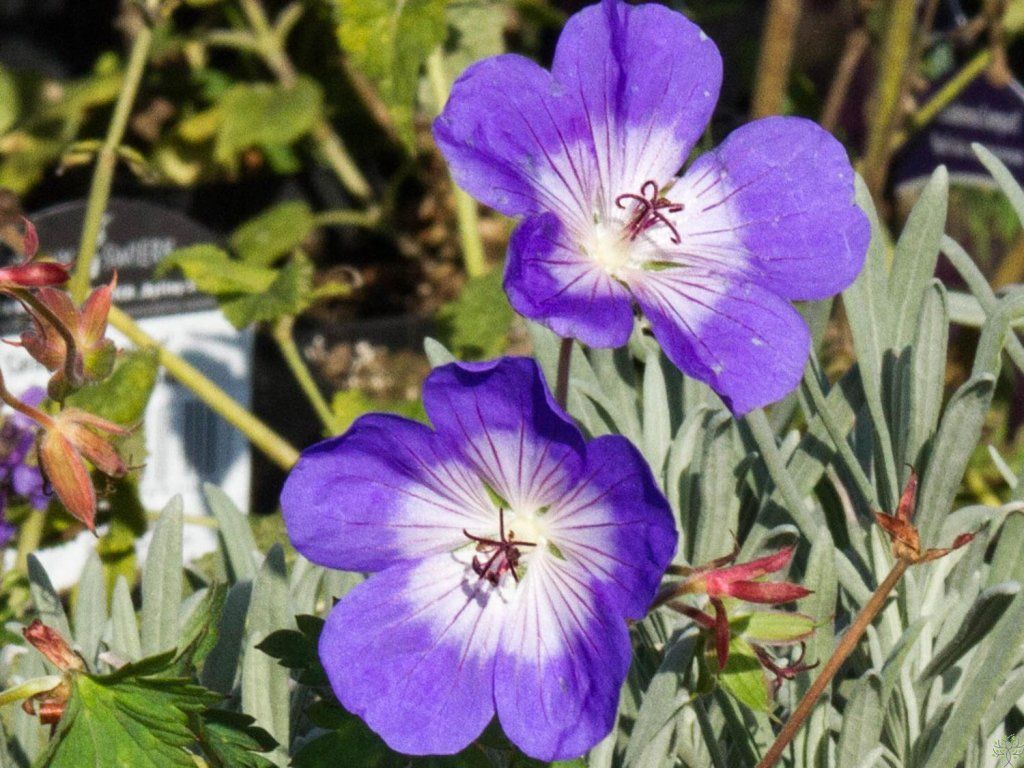Storchschnabel 'Bloom Me Away' - stammt aus Bergwiesen und Waldrändern des Himalaya, wo er in durchlässigen Böden mit ausreichend Feuchtigkeit während der Monsunzeit wächst. Die Sorte ‘Bloom Me Away’ ist der Handelsname für eine Selektion, die auch als ‘Libluma’ bezeichnet wird und seit 2020 durch das Pflanzenpatent PP32481 geschützt ist. Im Garten bildet sie eine horstige Staude mit tief gelappten, mittelgrünen Blättern, die auf der Unterseite fein behaart sind und im Herbst oft wärmere Farbtöne annehmen. Der Horst wird 35–45 cm hoch, an Stützen oder in dichterer Pflanzung können sich einige Triebe bis etwa 60–70 cm verlängern und leicht über den Beetrand hängen. Ab Juni trägt sie an verzweigten Stielen einzelne Blüten in Violett- bis Lavendeltönen, meist 4–5 cm breit, mit einem leicht helleren Auge und ausgeprägten Adern. Jede Blüte hält mehrere Tage und nach dem Verblühen folgen schnell weitere Knospen, sodass der Pflanzenbestand lange frisch aussieht. Die Blüte erfolgt in mehreren Wellen vom späten Frühjahr bis zum Sommer, und die Blüten bieten Nektar und Pollen für bestäubende Insekten. Die Pflanze eignet sich für Beetränder, in lockereren Staudenpflanzungen und in Gefäßen, wo sie Übergänge zwischen Gehölzen und Stauden mildert. Sie passt gut zu Ziergräsern, Salbei und Storchschnäbeln mit aromatischen Blättern, zum Beispiel zu Geranium × cantabrigiense.