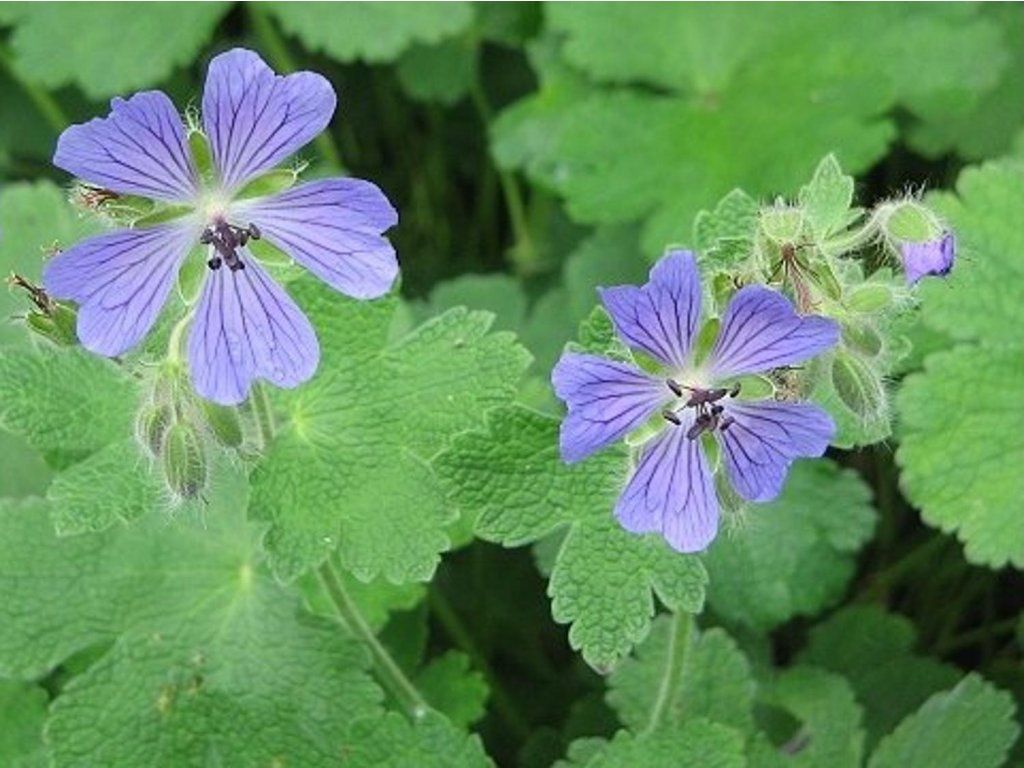 Anbau: Am besten gedeiht er an sonnigen bis halbschattigen Standorten, an heißen Standorten schätzt er leichten Mittagsschatten und Windschutz. Ein humoser, aber durchlässiger Boden mit guter Drainage ist ideal; in schwereren Lehmböden hat sich eine Beimischung von Kies bewährt. Der empfohlene pH-Wert liegt bei leicht sauer bis neutral, etwa 6,0–7,2. Die Pflanzung erfolgt von März bis Mai oder im September und Oktober. Die meisten Storchschnäbel blühen von Mai bis Juli, remontierende Sorten blühen in kleineren Wellen bis in den September hinein. Die Bewässerung ist nach der Pflanzung und während längerer Trockenperioden wichtig, nach dem Anwachsen ist der Storchschnabel normalerweise trockenheitstolerant. Die Düngung ist mäßig, im Frühjahr reichen Kompost oder ein ausgewogener Dünger, eine Überdüngung mit Stickstoff verringert die Standfestigkeit. Nach der Hauptblütewelle wird oft ein Rückschnitt der Triebe auf 5–10 cm empfohlen, was neues Laubwachstum fördert und die Blüte verlängern kann. Eine Mulchschicht aus Kompost oder feinem Kies stabilisiert die Feuchtigkeit und reduziert Unkraut. An Standorten mit Frost-/Staunässe-Risiko ist eine Kiesschicht besser geeignet. Im Topf wird er in hochwertigem Substrat mit einer Drainageschicht kultiviert; die Bewässerung ist regelmäßiger und der Wasserabfluss sollte schnell erfolgen. Die Pflanzabstände richten sich nach dem Wuchs: niedrige Arten 25–30 cm, mittlere 35–45 cm, robuste 50–60 cm. Die Frosthärte der meisten Garten-Storchschnäbel liegt bei etwa -28 bis -34 °C; empfindlichere Arten benötigen einen trockeneren Winterstandort. Im ersten Jahr ist es hilfreich, die Durchfeuchtung des Wurzelballens zu überwachen und beschädigte Blätter zu entfernen. Z an Krankheiten können Mehltau und Blattflecken auftreten, an Schädlingen insbesondere Schnecken und Blattläuse. In Töpfen tritt gelegentlich der Dickmaulrüssler auf; die Vorbeugung besteht in der Kontrolle der Wurzeln beim Umtopfen.