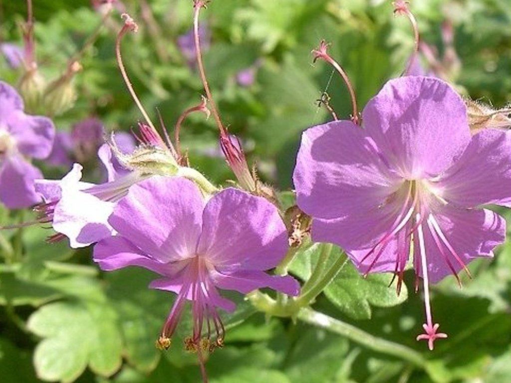 Anbau: Am besten gedeiht er an sonnigen bis halbschattigen Standorten, an heißen Standorten schätzt er leichten Mittagsschatten und Windschutz. Ein humoser, aber durchlässiger Boden mit guter Drainage ist ideal; in schwereren Lehmböden hat sich eine Beimischung von Kies bewährt. Der empfohlene pH-Wert liegt bei leicht sauer bis neutral, etwa 6,0–7,2. Die Pflanzung erfolgt von März bis Mai oder im September und Oktober. Die meisten Storchschnäbel blühen von Mai bis Juli, remontierende Sorten blühen in kleineren Wellen bis in den September hinein. Die Bewässerung ist nach der Pflanzung und während längerer Trockenperioden wichtig, nach dem Anwachsen ist der Storchschnabel normalerweise trockenheitstolerant. Die Düngung ist mäßig, im Frühjahr reichen Kompost oder ein ausgewogener Dünger, eine Überdüngung mit Stickstoff verringert die Standfestigkeit. Nach der Hauptblütewelle wird oft ein Rückschnitt der Triebe auf 5–10 cm empfohlen, was neues Laubwachstum fördert und die Blüte verlängern kann. Eine Mulchschicht aus Kompost oder feinem Kies stabilisiert die Feuchtigkeit und reduziert Unkraut. An Standorten mit Frost-/Staunässe-Risiko ist eine Kiesschicht besser geeignet. Im Topf wird er in hochwertigem Substrat mit einer Drainageschicht kultiviert; die Bewässerung ist regelmäßiger und der Wasserabfluss sollte schnell erfolgen. Die Pflanzabstände richten sich nach dem Wuchs: niedrige Arten 25–30 cm, mittlere 35–45 cm, robuste 50–60 cm. Die Frosthärte der meisten Garten-Storchschnäbel liegt bei etwa -28 bis -34 °C; empfindlichere Arten benötigen einen trockeneren Winterstandort. Im ersten Jahr ist es hilfreich, die Durchfeuchtung des Wurzelballens zu überwachen und beschädigte Blätter zu entfernen. Z an Krankheiten können Mehltau und Blattflecken auftreten, an Schädlingen insbesondere Schnecken und Blattläuse. In Töpfen tritt gelegentlich der Dickmaulrüssler auf; die Vorbeugung besteht in der Kontrolle der Wurzeln beim Umtopfen.