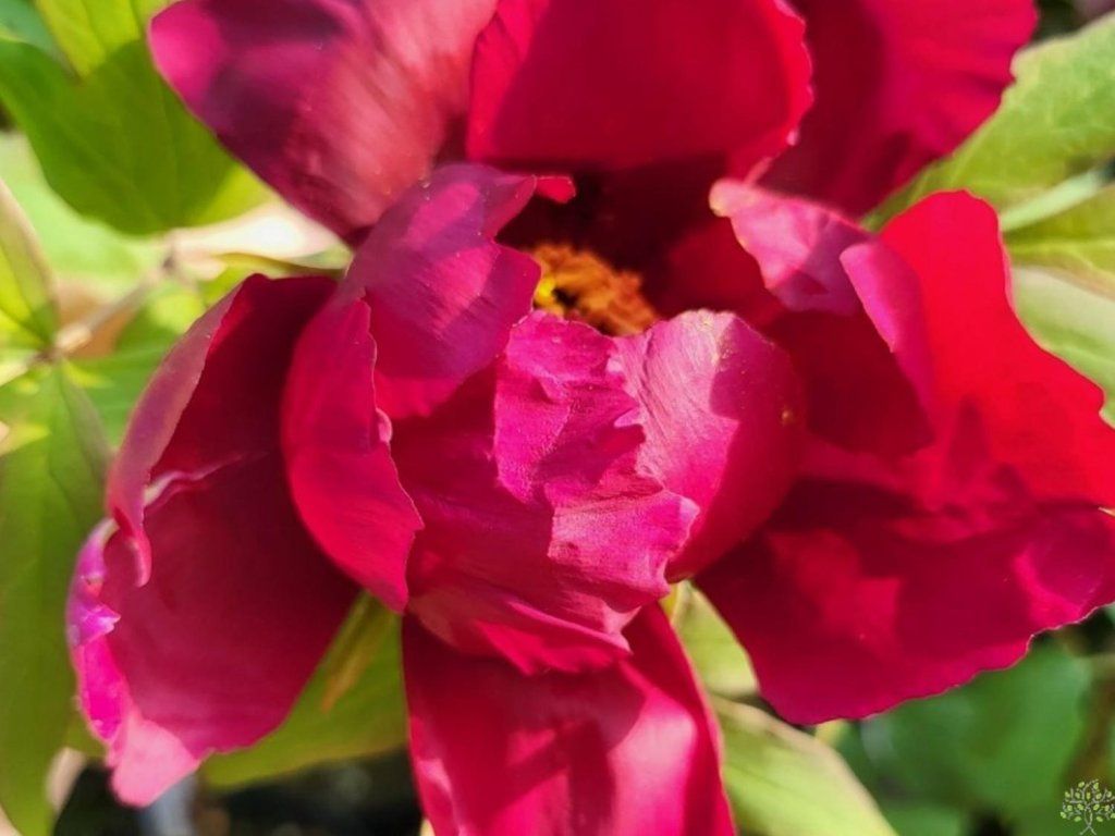 Baumpfingstrose 'Muregarasu' - eine verholzende Pfingstrose, die zu den traditionellen japanischen Strauchpäonien-Sorten gehört und für einen markanten Frühlingsakzent im Garten angebaut wird. Sie wächst langsamer, konzentriert sich nach der Pflanzung oft 1–2 Jahre auf die Wurzelbildung und erreicht etwa in 6–10 Jahren eine vollere Wuchsform. Sie bildet einen laubabwerfenden Strauch mit ausdauernden verholzten Trieben, die mit dem Alter zu einem festen Gerüst heranwachsen und die Regelmäßigkeit der Blüte erhöhen. In der Tschechischen Republik erreicht sie meist eine Höhe von etwa 1,2–1,5 m und eine Breite von 1,0–1,3 m. Ende Mai bis Juni öffnen sich große Blüten von etwa 15–20 cm, dunkelrot bis weinrot, meist einfach, mit deutlichen gelben Staubgefäßen. Die offene Mitte versorgt Bienen und Hummeln mit Pollen und verleiht der Blüte gleichzeitig einen leichteren Ausdruck als voll gefüllte Sorten, die nach Regen leichter schwer werden können. Der Duft ist eher schwach. Die Blüten eignen sich auch für den Schnitt, am besten in einer niedrigen Schale, wo die Zeichnung der Mitte zur Geltung kommt. Tief geteilte Blätter sind dunkelgrün und bilden nach der Blüte einen ruhigen Hintergrund für Sommerstauden. In der Komposition wirkt sie natürlich an einer warmen Mauer, vor dunklem Nadelgrün oder in Gesellschaft von Funkien, Purpurglöckchen und Frühlingsblühern.