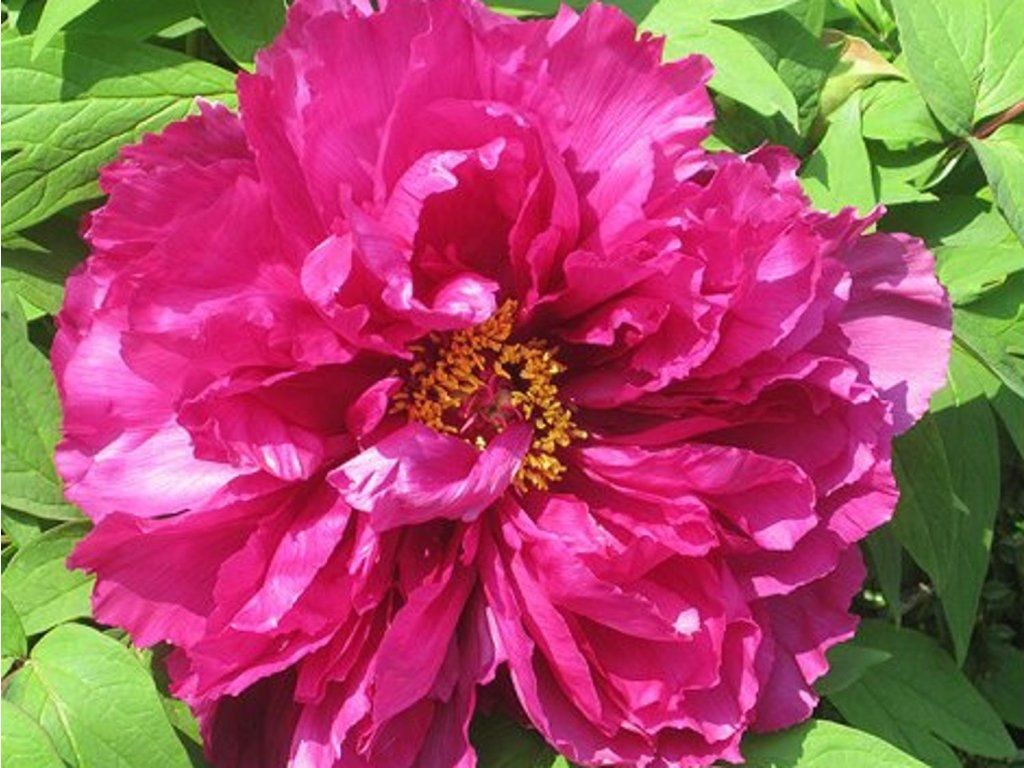 Anbau: Bevorzugt volle Sonne bis leichten Halbschatten und einen windgeschützten Standort, da große Blüten im Regen schwer werden können. Wächst am besten in tiefer, humoser und gut durchlässiger Erde mit einem pH-Wert von etwa 6,5–7,5. In Tonböden ist eine Drainageschicht und eine Beimischung von Kies sinnvoll, in leichten Böden ist hingegen ein höherer Anteil an Kompost ratsam. Die Bewässerung ist vor allem in den ersten beiden Jahren nach der Pflanzung wichtig, nach dem Einwurzeln verträgt sie kurzzeitige Trockenheit, aber lange Trockenperioden verkleinern die Blüten. Die Pflanzung erfolgt im Frühjahr oder Herbst, bei veredelten Pflanzen wird empfohlen, die Veredelungsstelle etwa 10–15 cm unter die Oberfläche zu setzen, damit der Strauch mit der Zeit eigene Wurzeln bildet. Gedüngt wird sparsam, im Frühjahr bewährt sich ein langsam lösliches Düngemittel mit einem höheren Anteil an Kalium und Phosphor, eine Überdüngung mit Stickstoff fördert weiches Wachstum. Der Schnitt beschränkt sich auf das Entfernen trockener oder gefrorener Äste nach der Blüte, eine Formgebung ist meist nicht erforderlich. Die Frosthärte ausgereifter Pflanzen liegt in der Praxis etwa bei -25 °C, Knospen können durch späte Fröste im Frühjahr geschädigt werden, daher helfen Windschatten und eine leichte Wintermulchdecke. In regnerischen Frühjahren können Grauschimmel oder Blattflecken auftreten, wertvoll sind ein luftiger Standort und eine nicht übermäßig feuchte Mulchschicht ohne direkten Kontakt mit der Stammbasis. Empfohlene Abstände betragen etwa 1,2–1,5 m je nach gewählter Komposition. In einem Kübel kommt sie nur bei ausreichender Tiefe, regelmäßiger Bewässerung und winterlichem Schutz des Wurzelballens vor dem Durchfrieren zur Geltung.
