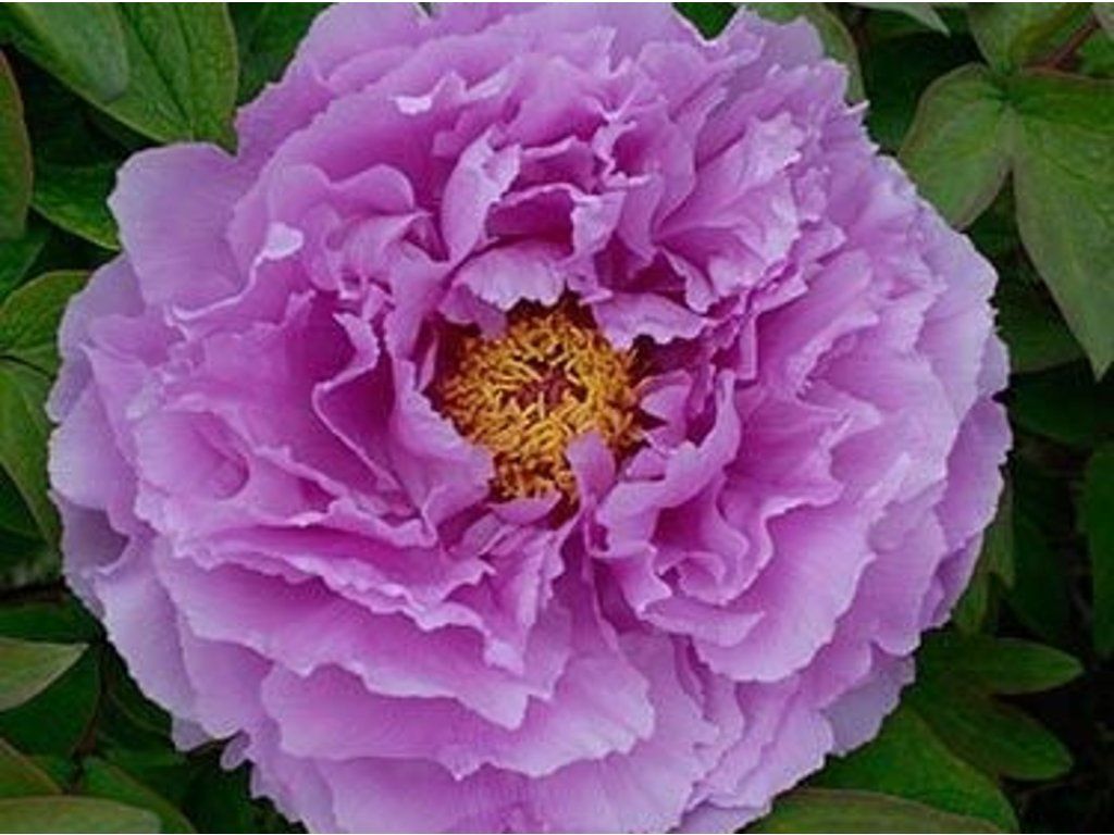 Pfingstrose 'Lila gefüllt' - eine wunderschöne verholzende Pfingstrose mit großen, gefüllten Blüten in intensivem Lila. Sie blüht im Mai und Juni, wenn ihre üppigen Blüten die Aufmerksamkeit auf sich ziehen und dem Garten ein elegantes Aussehen verleihen. Sie erreicht eine Höhe von 1–1,5 m und eine Breite von bis zu 2 m. Am besten gedeiht sie an einem sonnigen bis halbschattigen Standort. Sie ist voll frostbeständig, aber junge Pflanzen sollten im Winter geschützt werden. Dank ihrer Widerstandsfähigkeit und Langlebigkeit ist sie die ideale Wahl für die Einzelpflanzung oder als Teil von Zierbeeten.